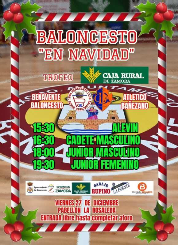 El baloncesto en Benavente tiene una cita muy especial estas navidades. El próximo 27 de diciembre se celebrará el Trofeo Caja Rural, un torneo de promoción para categorías base, que reunirá a las jóvenes promesas del Club Baloncesto Benavente y al Atlético Bañezano en el pabellón La Rosaleda. Esta actividad será una de las celebraciones más destacadas del club, que este año conmemora sus 40 años de historia.