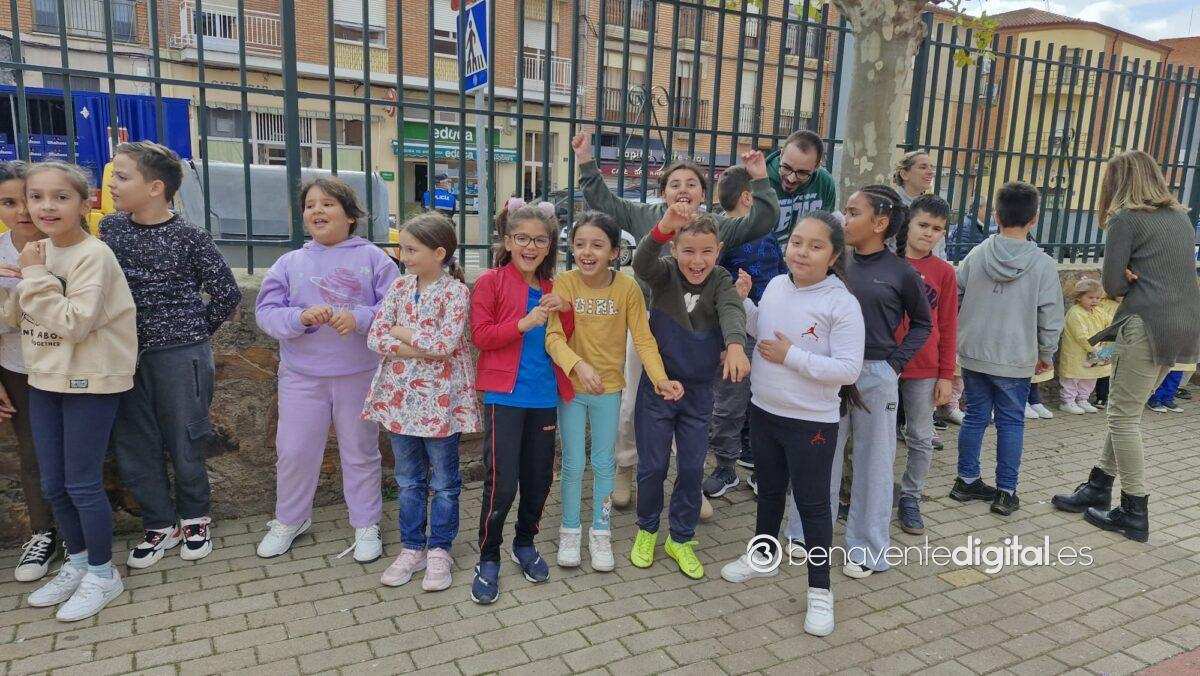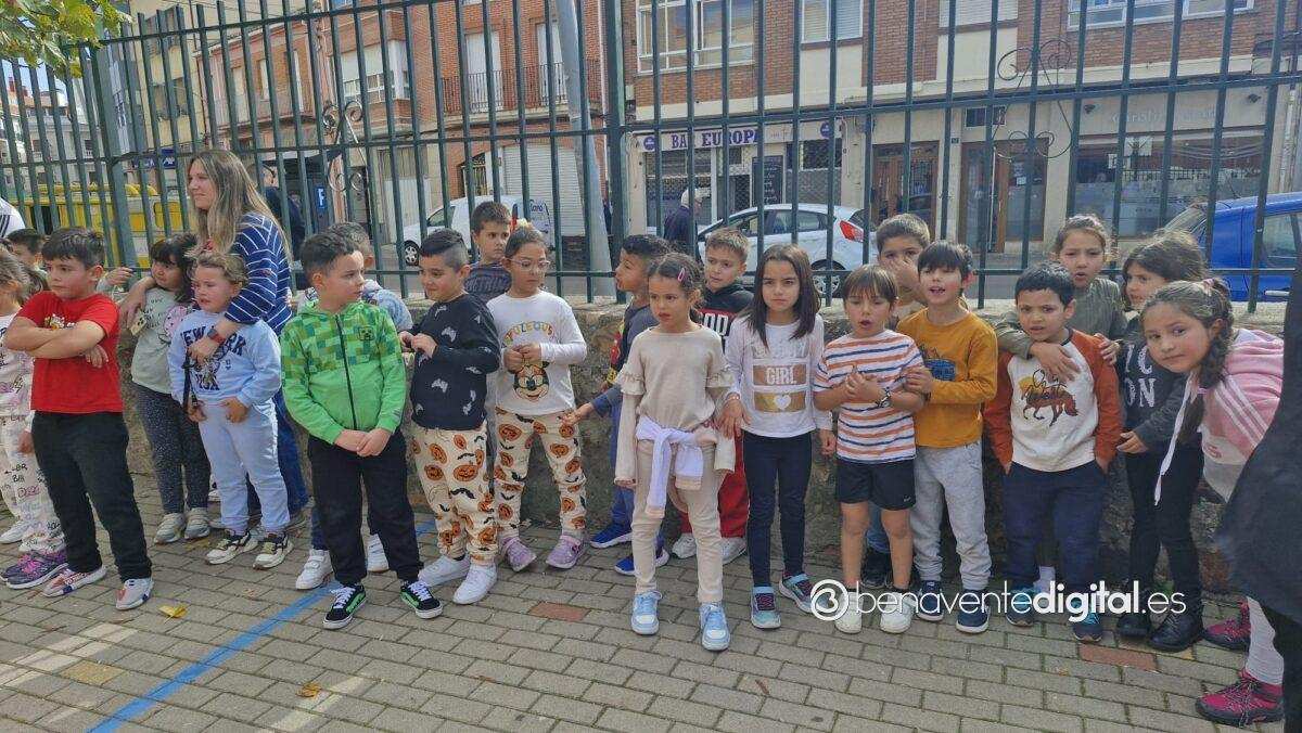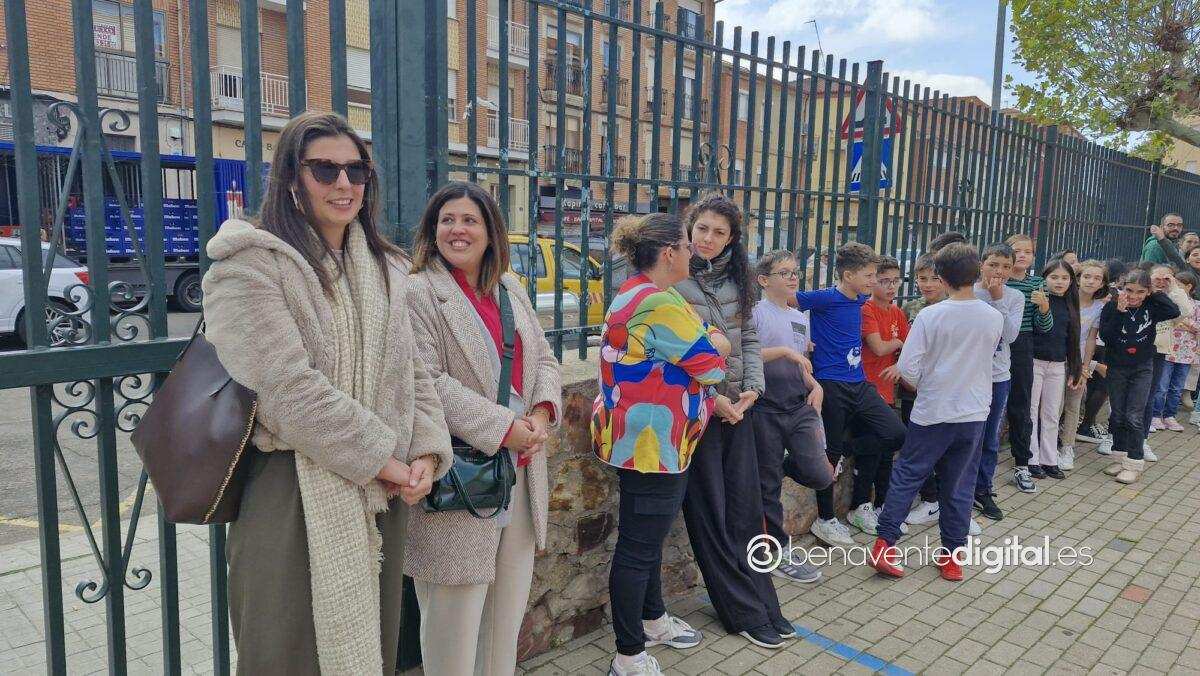 En unos pocos minutos, toda la escuela se reunió en el patio del colegio. También estuvieron presentes en esta área recreativa la alcaldesa de Benavente, Beatriz Asensio, la concejala de Educación, Mercedes Benítez, la concejala de Deportes, Elena Justo y el Concejal de Gestión Urbanística, Alberto Posado.