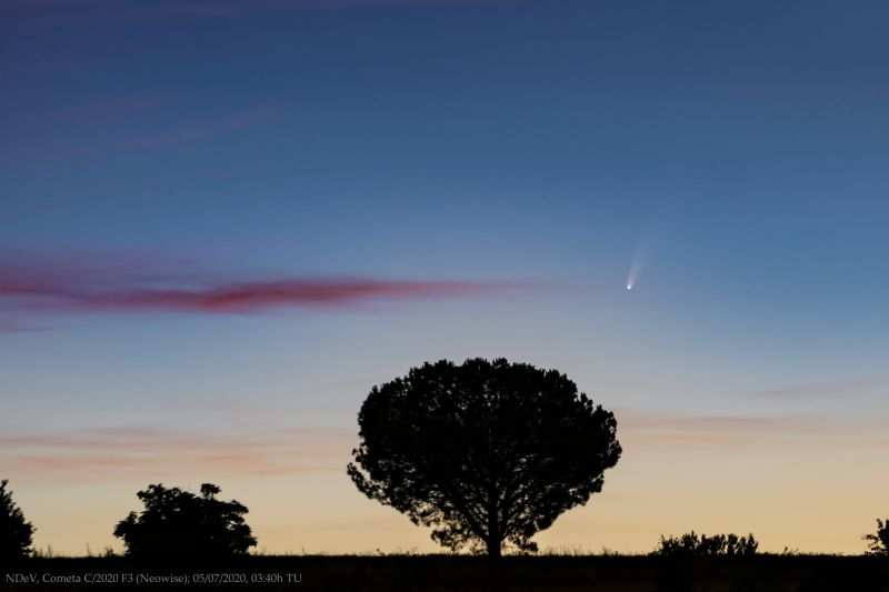 Hasta el póximo miércoles 15 de julio, es posible ver el cometa C/2020 F3 (NEOWISE) desde nuestras latitudes (unos 40ºN). Se puede buscar hacia el noreste antes de que salga el Sol.