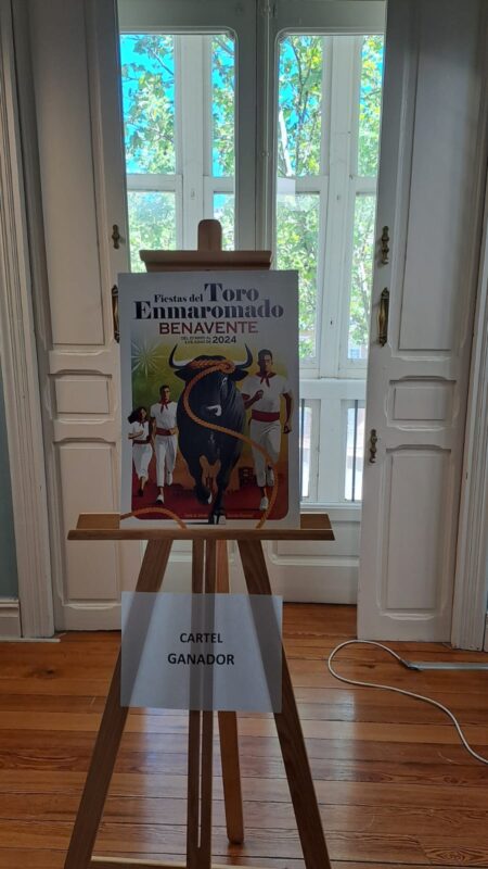 Esta mañana el concejal de festejos, Alberto Lorenzo presentaba junto con la Concejala de cultura, Mercedes Benítez, la exposición de carteles del concurso de cartelería del Toro Enmaromado en el Centro Cultural Soledad González. El concejal ha dado la enhorabuena al ganador, Rubén Lucas, y ha expresado su orgullo con la alta participación de este año agradeciendo el compromiso de los benaventanos con su fiesta. Tal y como ha comentado, se han presentado 42 obras, lo que el concejal ha destacado como muy positivo de cara a conseguir el reconocimiento de fiesta de Interés Turístico Nacional. De los diseños presentados 9 han sido en formato pintado sobre lienzo y el resto diseños digitales.