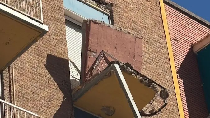 Este martes, a primeras horas de la mañana, se ha producido el desprendimiento de un voladizo de un balcón de grandes dimensiones en la calle Pablo Morillo de la capital.