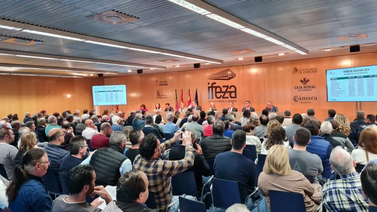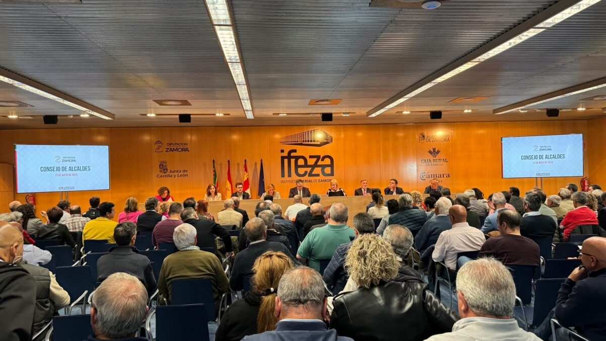 En la mañana de este viernes se ha reunido en el recinto de Ifeza el Consejo de Alcaldes de la provincia de Zamora en el que el presidente de la Diputación de Zamora, Javier Faúndez Domínguez, y la delegada territorial de la Junta de Castilla y León, Leticia Garcia Sanchez, han informado a los representantes municipales de las convocatorias de Fondos Europeos y eficiencia energética, del Fondo de Cohesión Territorial y del protocolo general de actuación para la renovación de redes de abastecimiento y mejora de la eficiencia en la gestión del agua potable firmado recientemente con el Gobierno Autonómico para el periodo 2024-2027, entre otros asuntos.