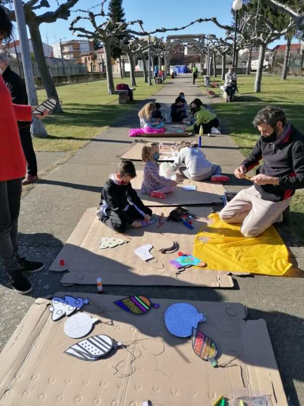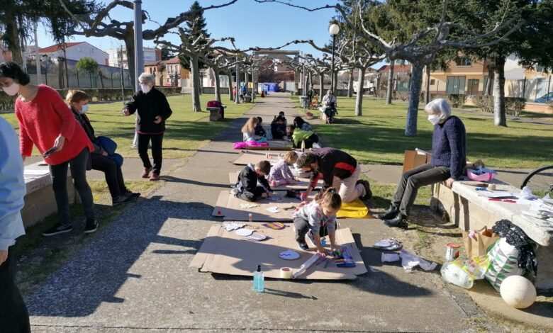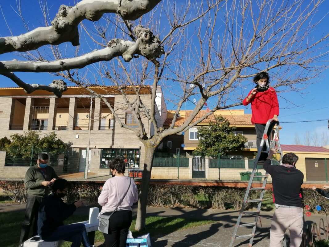 Convocados por la asociación cultural «Aseranar» de Santibáñez de Vidriales, niños y mayores han participado en un taller de adornos navideños con objeto de ornamentar los árboles del parque del Ferial en esta localidad.
