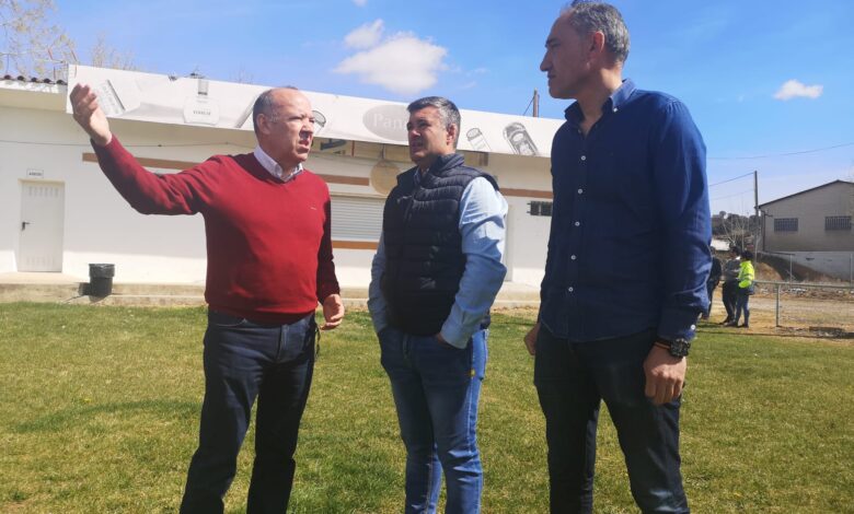 El vicepresidente primero de la Diputación de Zamora y diputado de Carreteras, José María Barrios Tejero, acompañado por el alcalde de Camarzana de Tera, Jaime Panizo, y por el diputado por la circunscripción de Benavente, Emilio Fernández Martínez, así como técnicos del Área de Obras de la Institución Provincial, ha visitado las instalaciones deportivas de «Entrepuentes» de la localidad en las que próximamente se comenzarán a ejecutar las obras para la mejorar el campo de fútbol actual, a las que la Institución Provincial aporta 110.000 euros.