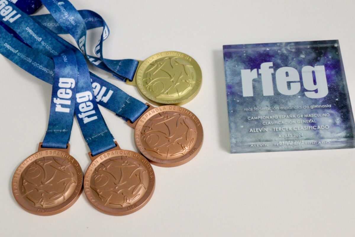 El joven gimnasta ha querido mostrar sus cuatro medallas (1 oro y 3 de bronce) conseguidas en el nacional de Avilés.