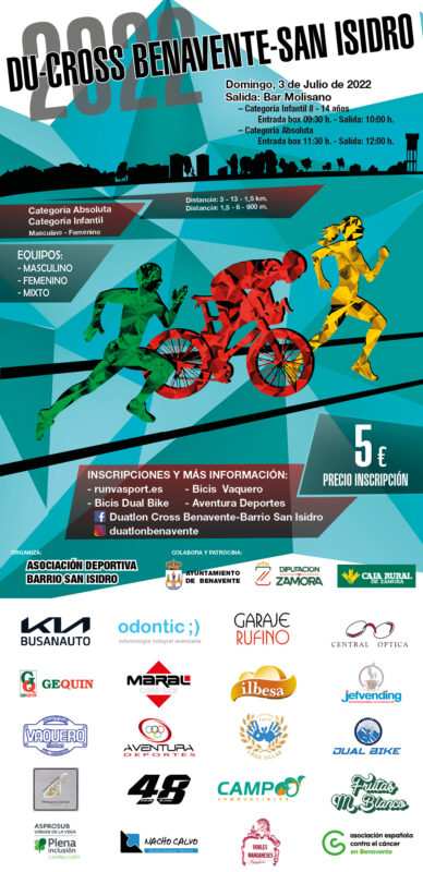 Esta mañana tenía lugar en el Ayuntamiento de Benavente la presentación de una de las pruebas más populares y novedosas de Benavente y de la provincia. El I Duatlón del Barrio San Isidro, el DU-CROSS Benavente-Barrio San Isidro era presentado de forma oficial por el concejal de Deportes, Fernando Marcos, el diputado de Deportes, Jesús María Prada y por parte de la organización, Óscar Gómez, de la asociación deportiva Barrio San Isidro.
