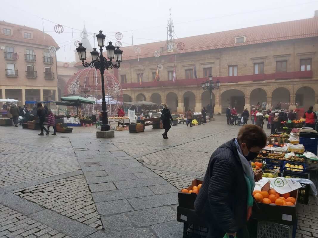 La niebla que se cernía esta mañana del jueves 30 de diciembre sobre Benavente no impidió a muchos vecinos de la ciudad y comarca realizar las compras en el último mercado del año, de este 2021 a pocas horas de cerrar sus puertas.