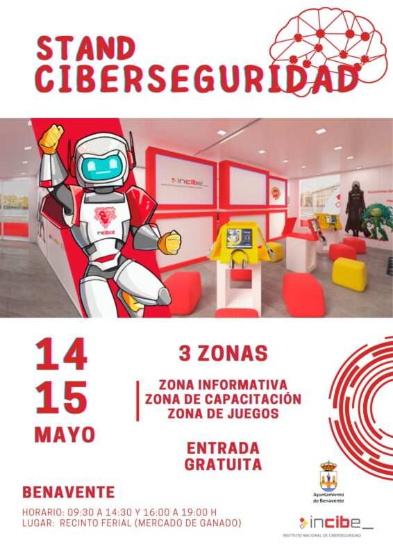 Durante el martes 14 y miércoles 15 de mayo el recinto ferial del Mercado de Ganado acoge el stand de INCIBE (Instituto Nacional de Ciberseguridad) donde se desarrollarán diferentes actividades enfocadas a la sensibilización, concienciación, educación, promoción y divulgación en ciberseguridad. Así lo informa la Concejalía de Educación del Ayuntamiento de Benavente.