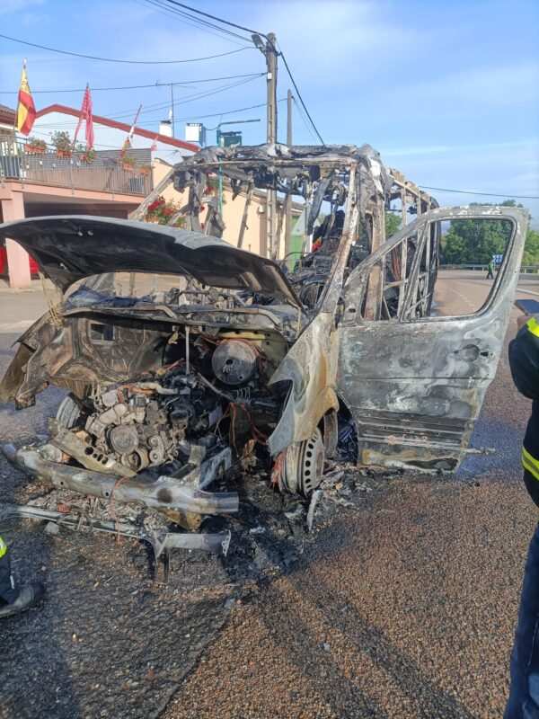 El Servicio de Emergencias de Castilla y León 112 comunicó a las 8:02 de la mañana el incendio del vehículo en la carretera N-122, a la altura del Restaurante Los Castaños de Trabazos.