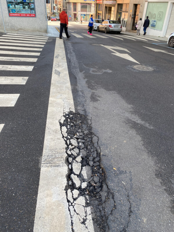 El PP se pregunta: «¿cómo es posible que en menos de cinco meses se haya producido un deterioro tan ostensible y que el alcalde no haya dado ninguna explicación a los vecinos de lo que está pasando?». Además inciden en «si la idea de colocar la rotonda se contemplaba en la redacción del proyecto técnico de asfaltado o fue otra de las brillantes ideas a posteriori de nuestro alcalde» ya que se debería -según explican- de haber estudiado previamente los efectos del tráfico en la zona próxima a la rotonda dibujada, que es donde los vehículos generan más presión y es donde se está produciendo un mayor deterioro del firme.