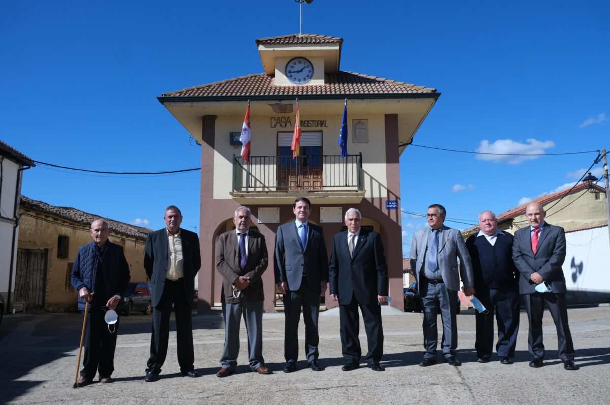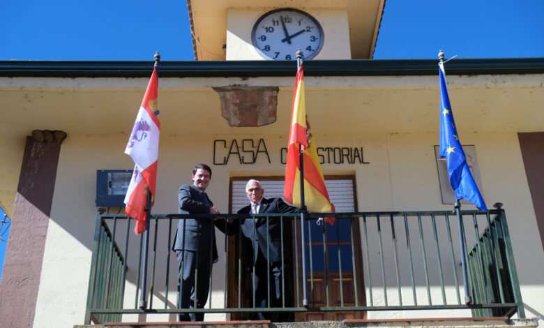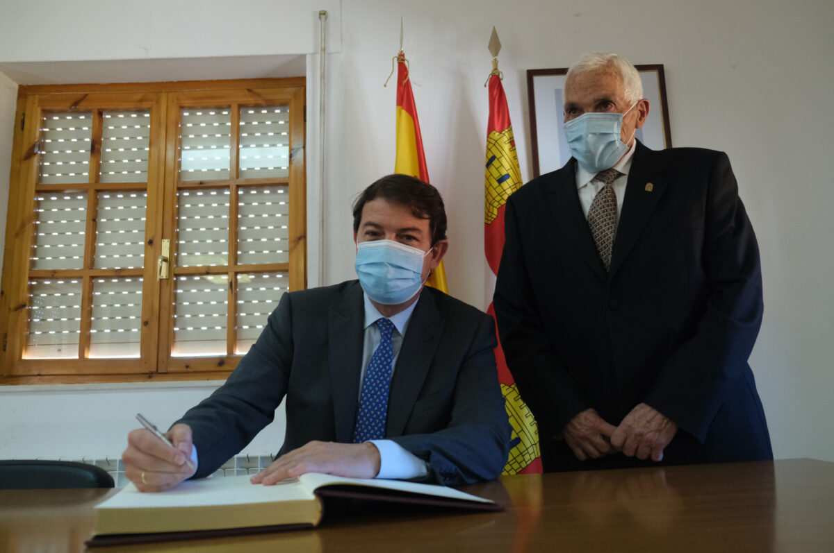 El presidente del Ejecutivo de Castilla y León llegaba hasta la Casa Consistorial de Villabrázaro donde era recibido por el regidor municipal, Dorsey García, para firmar en el libro de honor y recorrer las dependencias municipales, tener tiempo para asomarse al balcón y hacerse la foto de rigor en una jornada bien soleada.