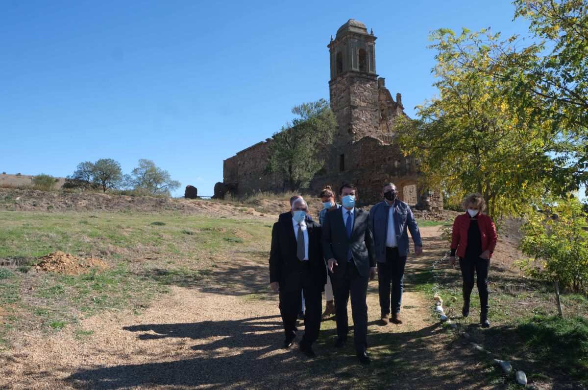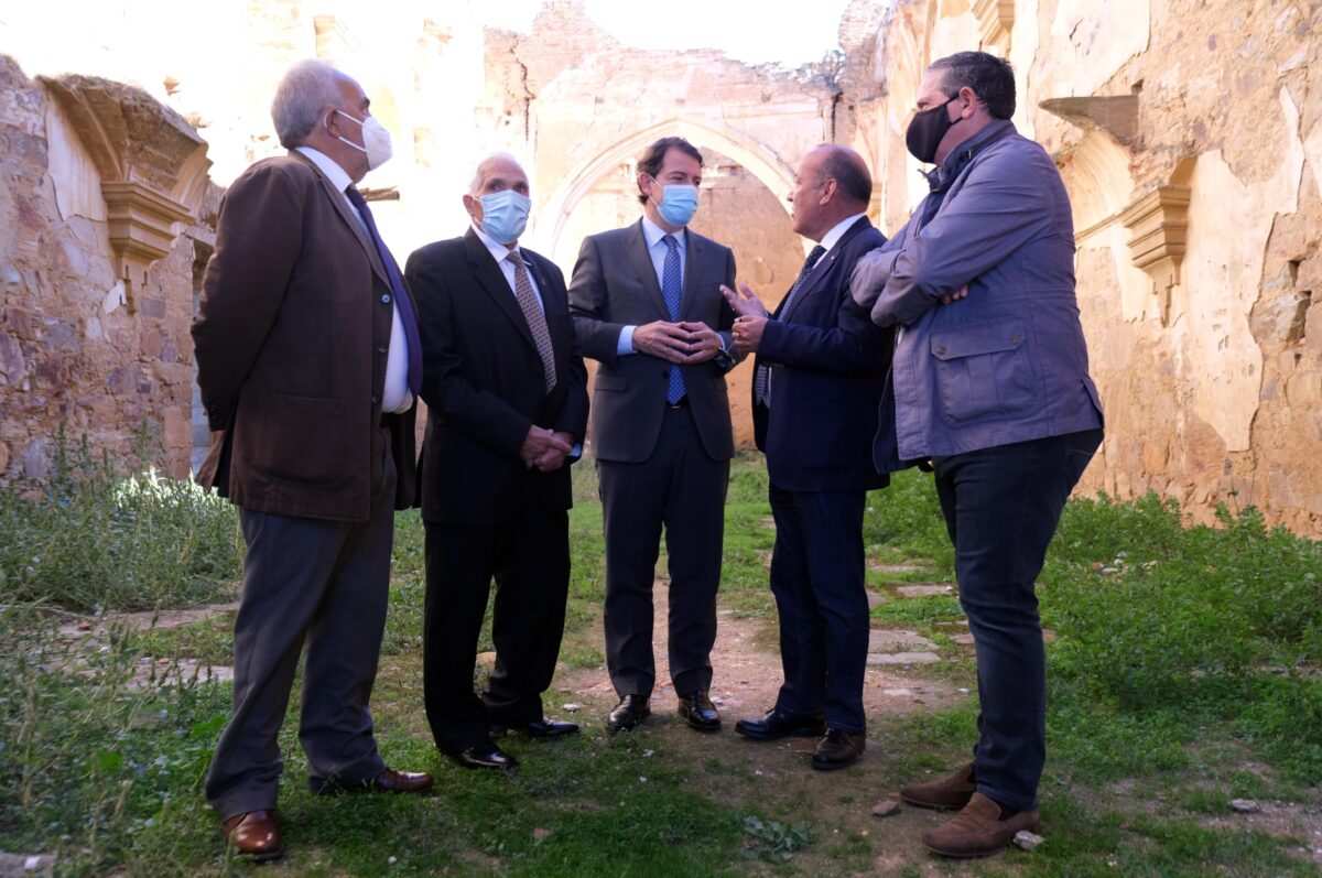Mañueco, su anfitrión el alcalde Dorsey García, y la comitiva, enfilaron el camino hasta la localidad aneja de San Román del Valle para conocer el edificio más emblemático del Valle de Santa María, el antiguo convento franciscano en ruinas para el que se viene reclamando una restauración estructural.