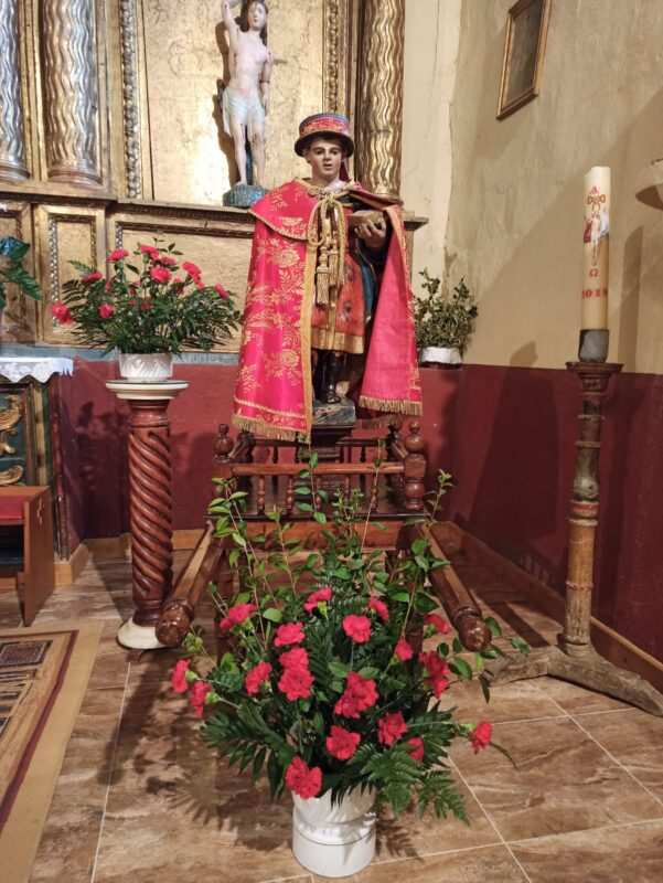 La antigua cofradía se encarga de mantener la celebración con todo el boato característico, aunque este año, y una vez más, por culpa de la pandemia, los actos se circunscriben a una misa este sábado a las 13:00 horas y el domingo a la misma hora, la misa en memoria de los cofrades difuntos. Eso si, y por segundo año consecutivo, sin la procesión desde el templo parroquial hasta las inmediaciones de su ermita, ya desaparecida, en el cementerio. La cofradía del santo se encarga, después de la misa que todos los asistentes participen de unos aperitivos.