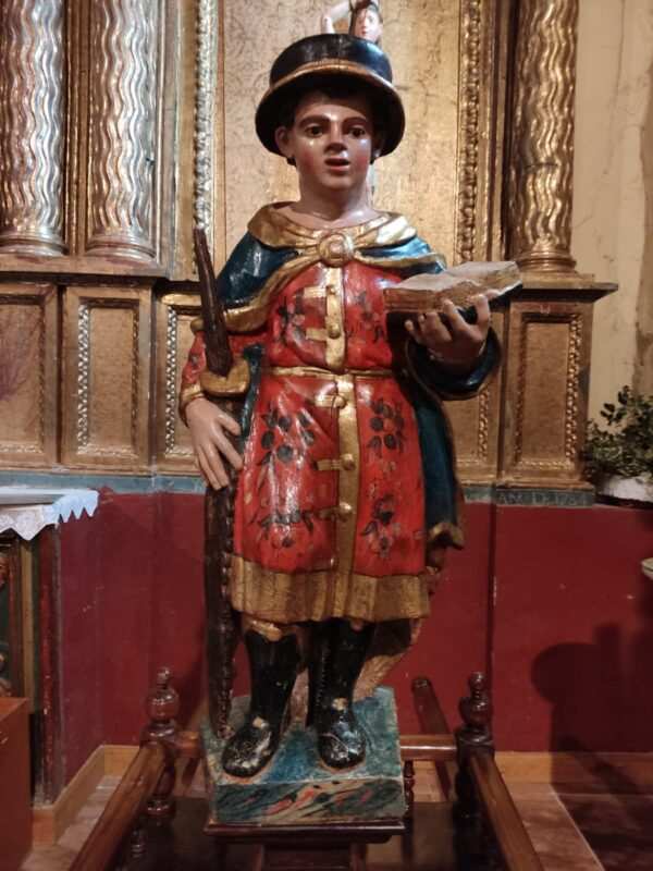 Y este año 2022 Santo Tiso luce sus mejores galas, pues la imagen del copatrono representado en una talla policromada del siglo XVII viste con su capa de paño damasquinado con el color rojo de los mártires y bordados de hilo de oro. El aureolado viste sombrero con las cintas de color rojo y el púrpura del sacrificio, ya que por cada fiesta se suele cambiar el color de la cinta, esa es la tradición, como lo es la devoción que reúne este santo con casi 400 años de historia, probablemente desde mediados del siglo XVII. No obstante, un siglo más tarde, en la segunda mitad del siglo XVIII las referencias documentales detallan que comparte devociones con otras dos imágenes más como la de Santa Cruz y la de San Miguel, como refiere el informe de cofradías que el Intendente vallisoletano Don Ángel de Bustamante remitió al Consejo de Castilla.