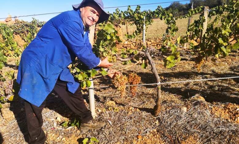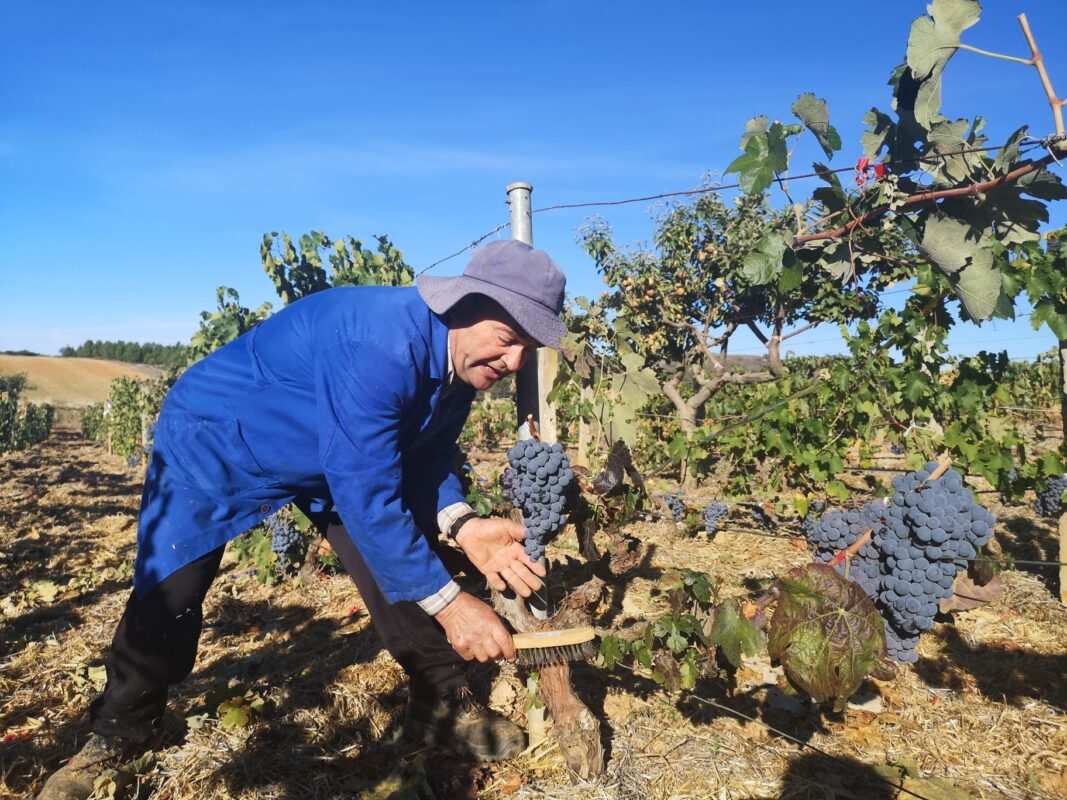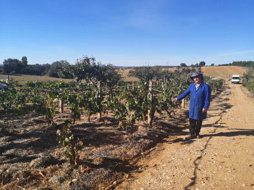 El calendario señala ya en rojo las fechas en las que Santos realizará la vendimia, y lo hará a mediados de este mes de octubre, porque quiere la mejor madurez del fruto aprovechando este veranillo de San Miguel que procura el dorado del hollejo y la mayor dulzura del mosto. De la cepa a una caseta, un recinto cubierto que este cultivador llama «el pajar» donde reposan los mejores racimos junto a distintas variedades de manzanas porque en esta plantación ecológica no se producen únicamente racimos de uvas, sino también manzanas y peras y otros productos de la huerta.