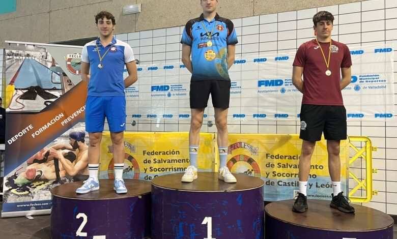 Seis socorristas se suben a lo más alto del pódium durante la undécima edición del Open de Castilla y León de Salvamento y Socorrismo Absoluto, enmarcado en la tercera jornada de Liga Española de Clubes, de las categorías juvenil, junior y absoluta, que se ha celebrado en la piscina de 50 metros del Centro Especializado de Alto Rendimiento Río Esgueva, de Valladolid, y que ha reunido cerca de 150 deportistas de doce clubes y tres Comunidades Autónomas.