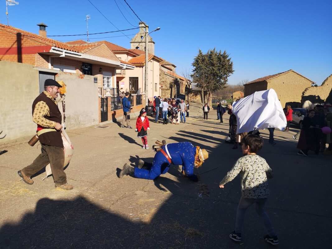 La tradición manda que los mozos se junten en un corral para disfrazarse, ayudándose unos a otros. A las puertas se agolpaban los jóvenes del pueblo al grito de: «¡Que salga el toooro, con cueeernos y tooodo!». Al salir los actores comenzaban las carreras de torero y toro tras los chicos y las chicas y algunos de los asistentes se encerraban en las casas por miedo real al toro y otros lo envitaban para provocar su embestida. El torero, de vez en cuando, se recreaba en la plaza dando pases al toro hasta llegar a la suerte de matar. La fiesta concluía con todos los personajes juntos desfilando por las casas pidiendo «limosna pa´l toro», y los vecinos les obsequiaban con patatas , huevos, chorizo, aceite, algún pollo y, también algún dinerillo que les servía para organizar una cena.