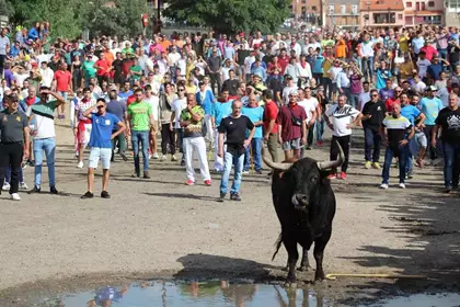 ‘Mirabajo’, nombre del Toro de la Vega protagonista del encierro este año, ha protagonizado una peligrosa y accidentada carrera en cuyo transcurso ha llegado a romper una talanquera y ha corneado gravemente a un joven que ha tenido que ser intervenido de urgencia en la Plaza de Toros.