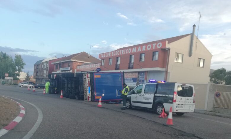 El vuelco de un camión a primera hora de esta mañana, sobre las 08:00 horas, en la rotonda de acceso a Benavente en la avenida Federico Silva, ha obligado a cortar la circulación de un vial de la rotonda.