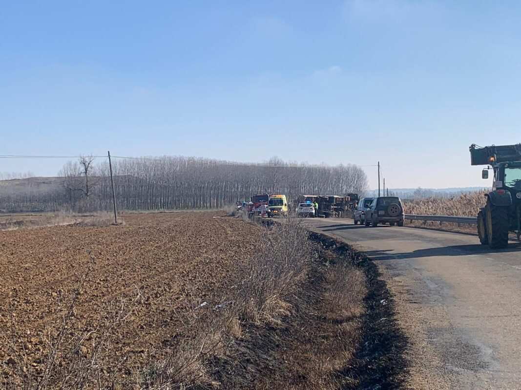 Un camión cargado de gasóleo a domicilio volcó este mediodía en la carretera de Matilla de Arzón, en la ZA-L-2557 en el punto kilométrico 2,5. Los bomberos de Benavente trasladados hasta el lugar realizaron la operación del trasvase del combustible a otro vehículo en previsión de seguridad.