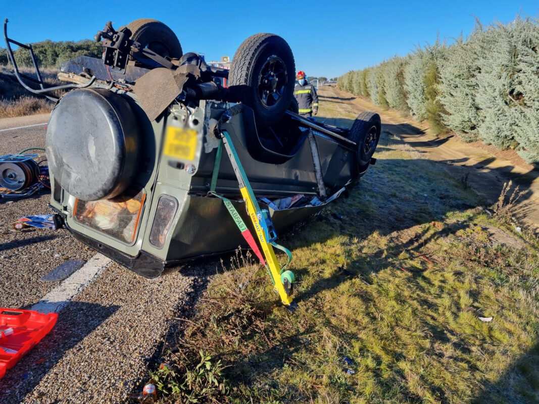 Un vehículo todoterreno volcó al salirse de la vía provocando que uno de los ocupantes, concretamente el copiloto, quedase atrapado dentro del vehíclo.
