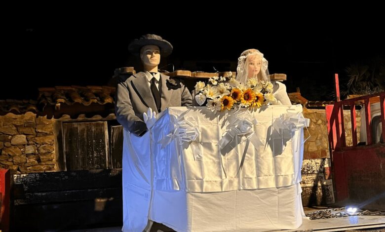 La asociación Raíces recrea el mayo con una pareja de esponsales unidos por un yugo