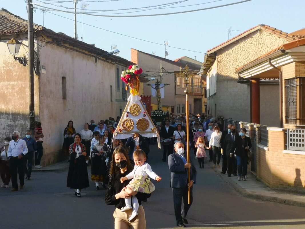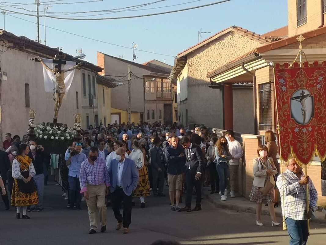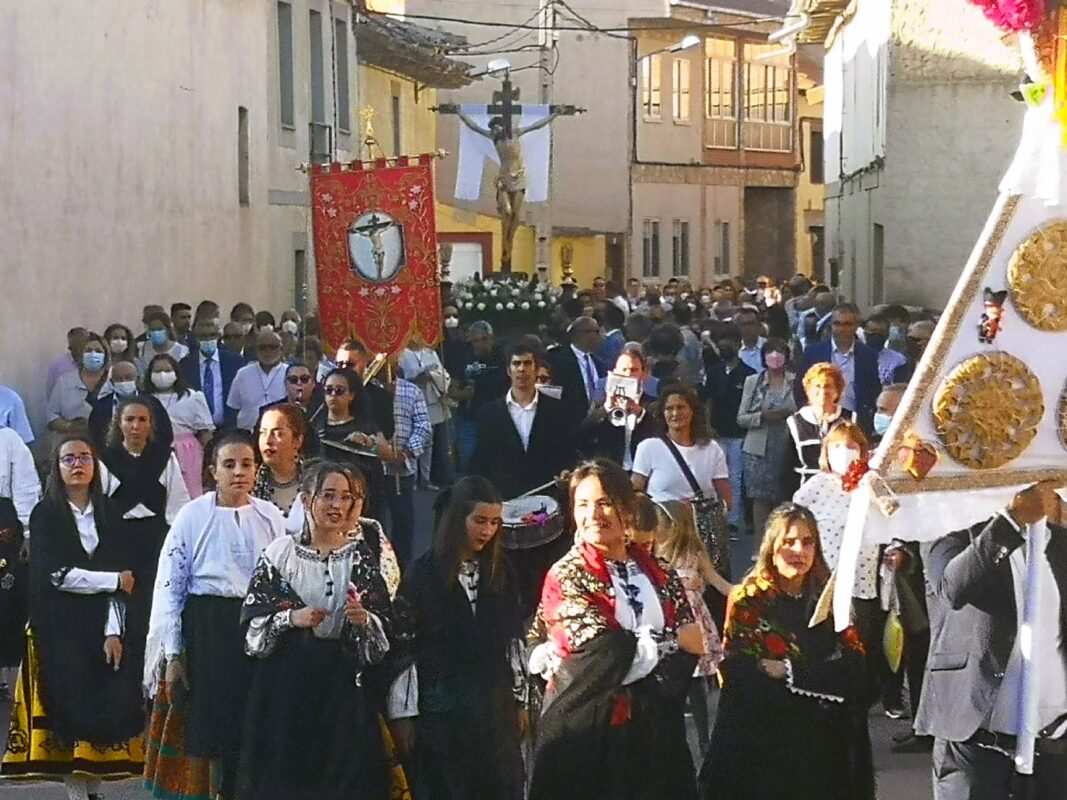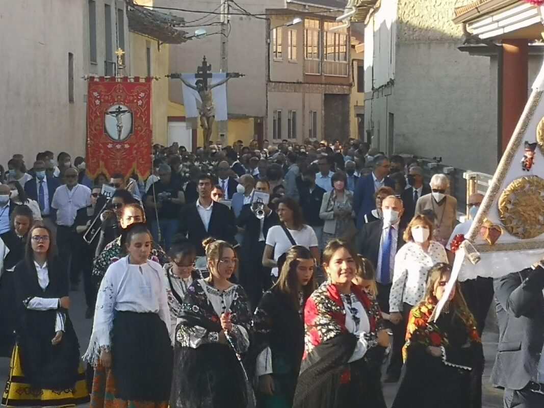 Ya en el interior del templo se comenzaba el rezo del Rosario y el último día de la novena, antes que las mozas ataviadas con trajes tradicionales de ricos bordados iniciasen su desfile procesional por el pasillo central de la iglesia en una comitiva encabezada por el joven Víctor Corral, a la sazón el mozo del Ramo del Bendito Cristo. Con el canto del Ramo y la bendición del párroco, Baltasar Villalón, se daba paso a la procesión con la imagen estrella de la jornada festiva.