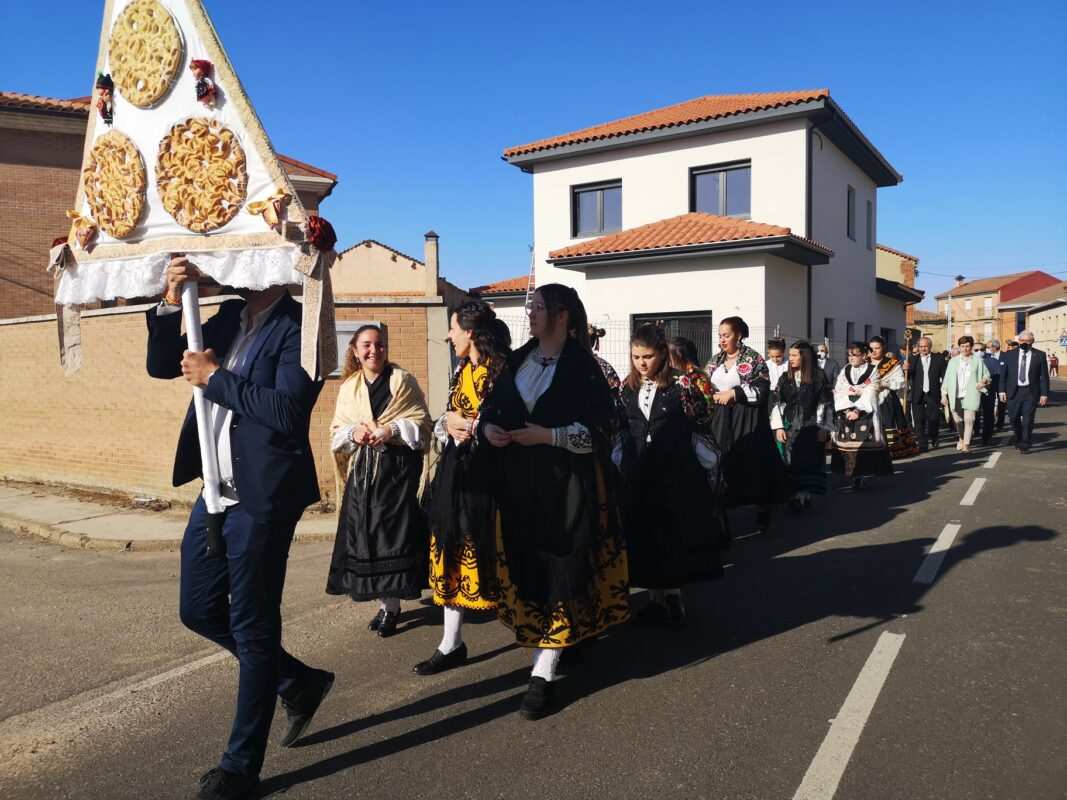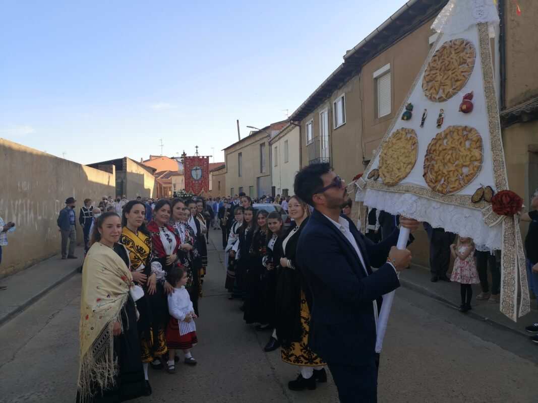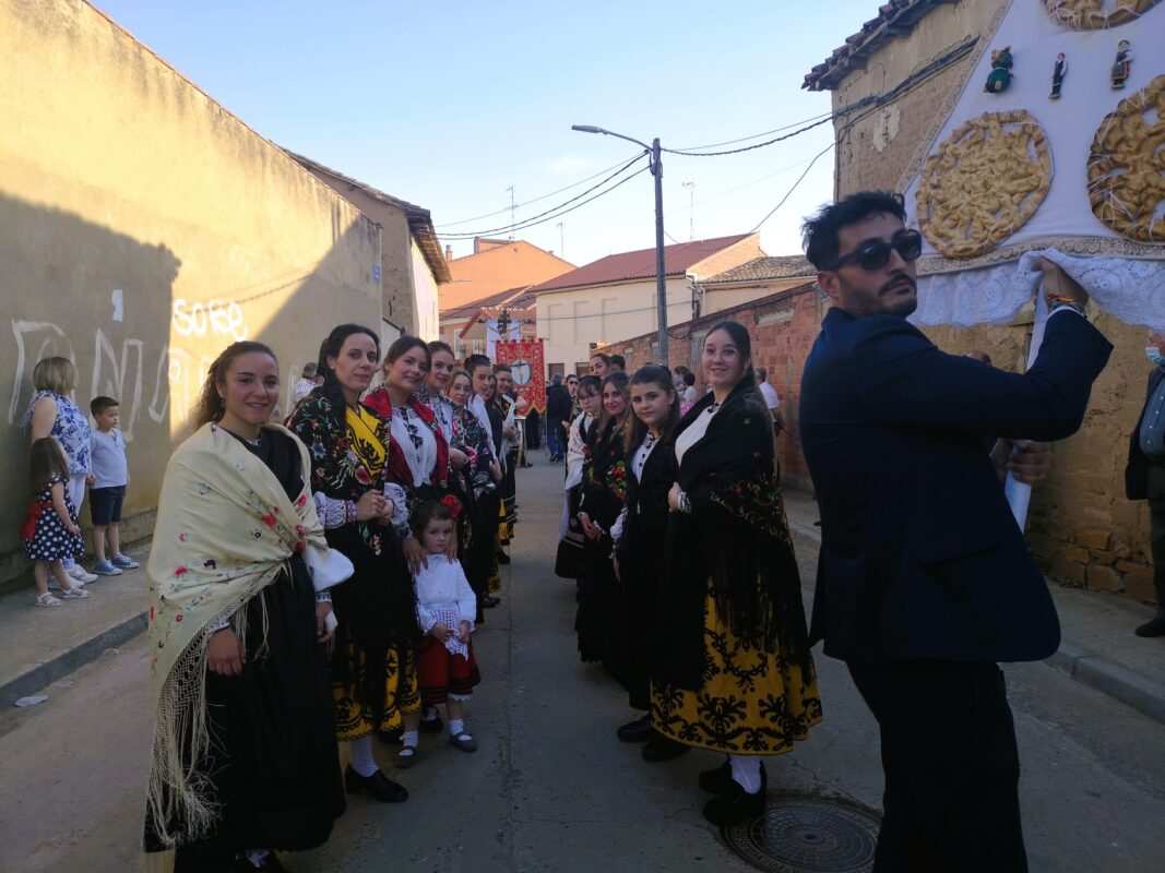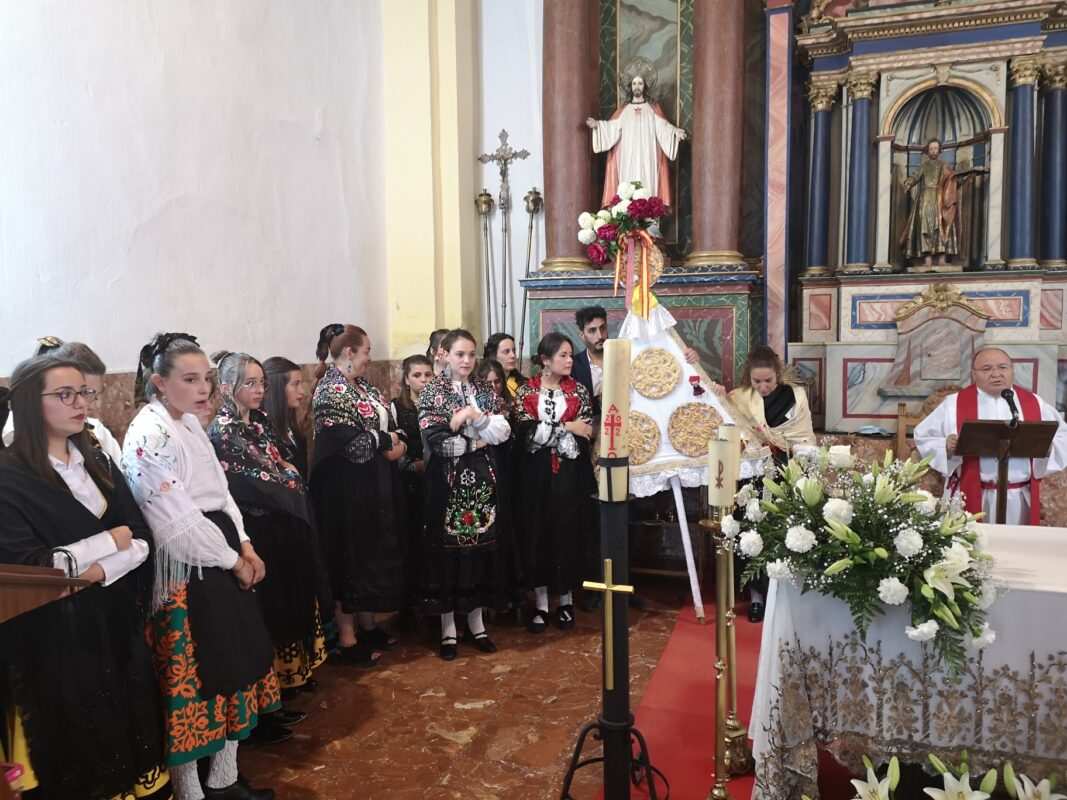 Ya en el interior del templo se comenzaba el rezo del Rosario y el último día de la novena, antes que las mozas ataviadas con trajes tradicionales de ricos bordados iniciasen su desfile procesional por el pasillo central de la iglesia en una comitiva encabezada por el joven Víctor Corral, a la sazón el mozo del Ramo del Bendito Cristo. Con el canto del Ramo y la bendición del párroco, Baltasar Villalón, se daba paso a la procesión con la imagen estrella de la jornada festiva.
