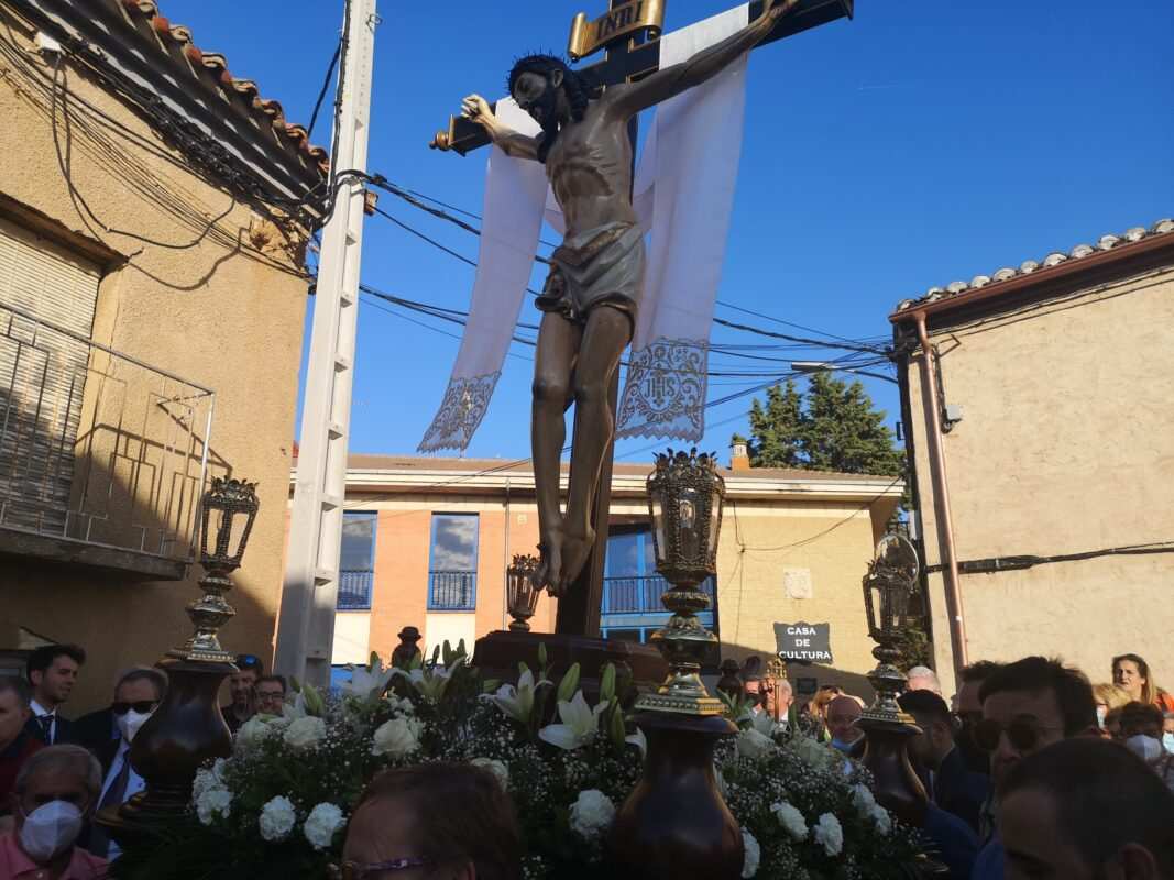 Por el recorrido callejero habitual y a paso lento, la comitiva logró momentos invadidos por la emoción al portar las andas de la imagen del Bendito Cristo de la Vera Cruz. Los ojos lacrimosos se evidenciaron en no pocos portadores sintiendo el calor del gentío y el privilegio del electrizante sentimiento devocional llevando la carga sobre hombros. Así durante todo el trayecto y con especial significado al paso de las estrechas calles, por eso de sentirse rodeado de multitud de devotos.