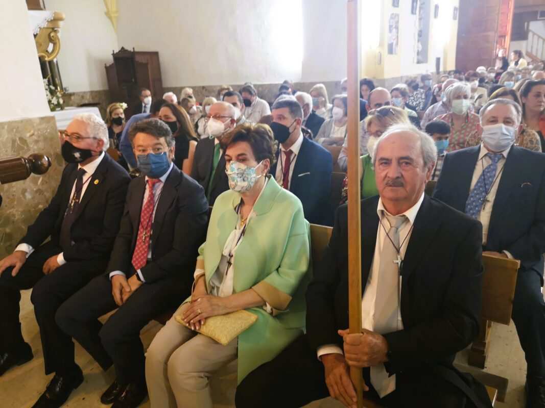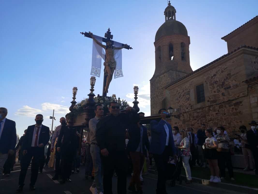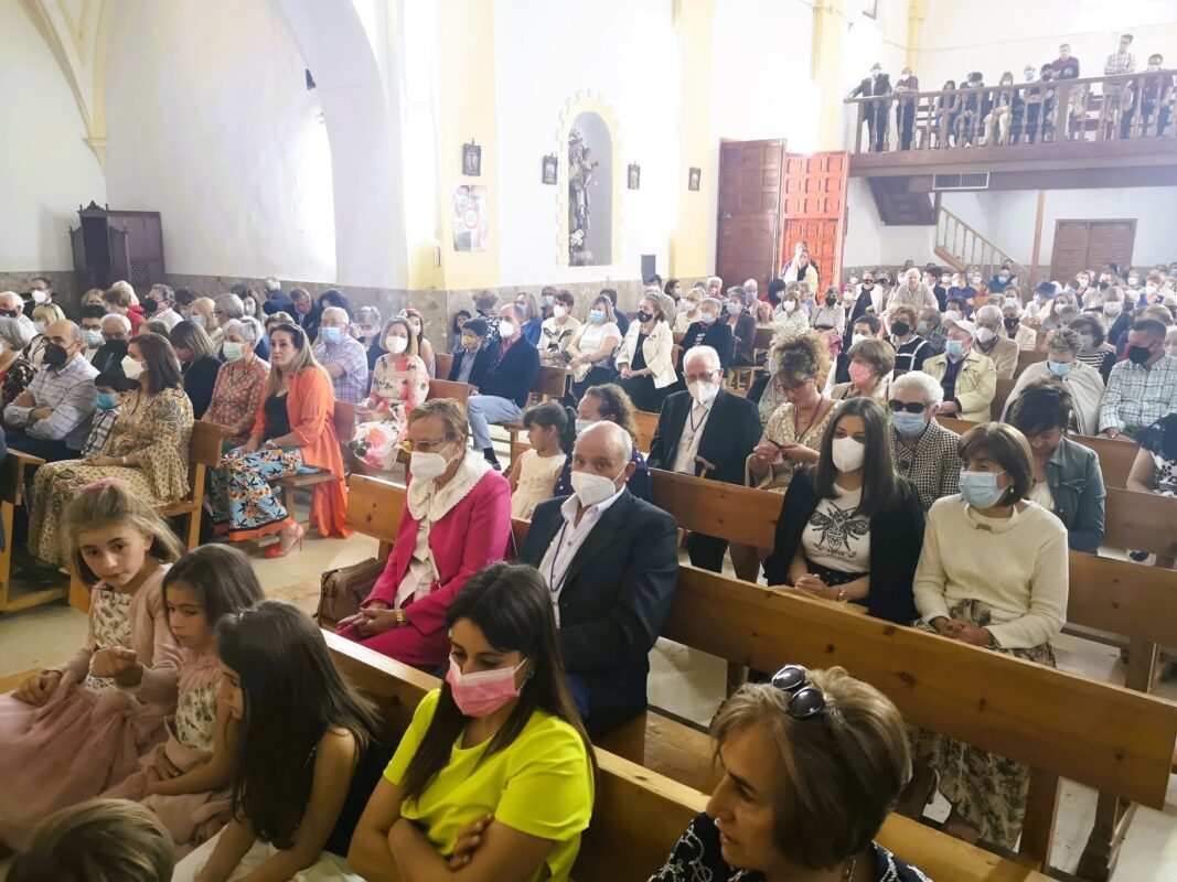 La llegada de la imagen a la iglesia se volvía tan solemne como lo fue a la salida. Una ordenada disposición, a un lado las mozas del Ramo y al otro la agrupación musical, formó un pasillo junto al pórtico para que el Bendito Cristo de la Vera Cruz entrase en el templo. La celebración religiosa finalizaba con el himno al Bendito Cristo.