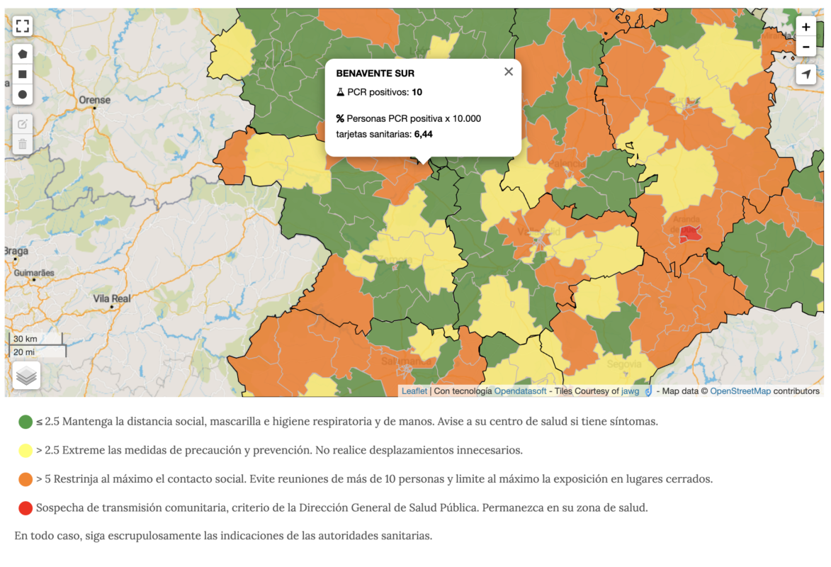 Empeora la situación de las Zonas Básicas de Salud (Z.B.S.) de Benavente y Santibañez de Vidriales, pasando ambas a naranja en el mapa de coronavirus.