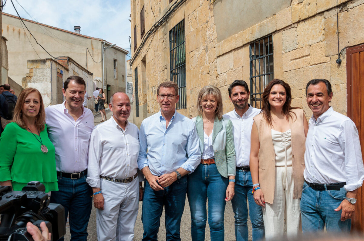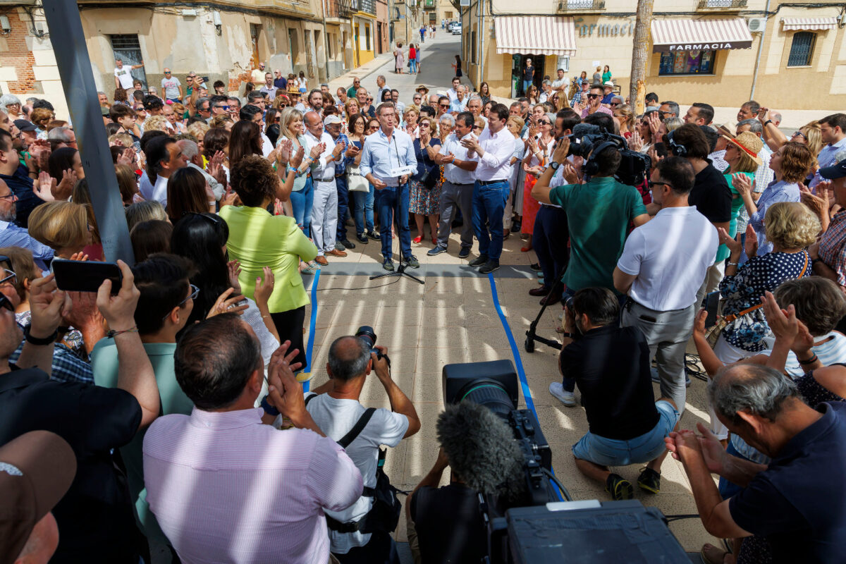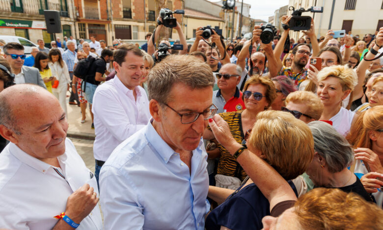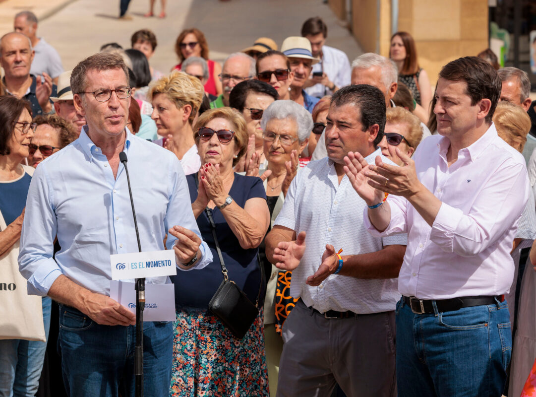 Critica que el candidato socialista “ha hecho más viajes en Falcon que pueblos ha visitado en España” y destaca las dificultades del PSOE para convocar a ciudadanos en sus actos y hablar en la plaza de un pueblo. “Pretendo que los españoles me conozcan, que sepan quién soy, lo que voy a hacer, los compromisos que asumo y la palabra dada a todos los ciudadanos y, por eso, vengo recorriendo los pueblos, las ciudades y los distintos lugares de España. Sólo así podemos pactar entre todos una mayoría suficiente para gobernar sin intermediarios”, subraya. “Nuestra campaña es conocer a cuanta más gente mejor, estar en cuantos más sitios mejor: en las calles, en los barrios de las ciudades, en las villas y en los pequeños pueblos. La campaña del PSOE es distinta: no estar en los pueblos, no dar la mano a los ciudadanos y huir de la gente y de que la gente pueda acercarse a los líderes y a Sánchez”, resaltaba el candidato Feijóo ante un nutrido grupo de fieles en Corrales del Vino.