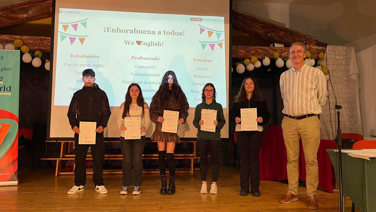 El Instituto de Educación Secundaria (IES) Los Sauces de Benavente ha sido el escenario de una ceremonia especial este día, en la que se reconoció el esfuerzo y dedicación de los estudiantes que obtuvieron sus certificados de Cambridge. Este evento, celebrado en el salón de actos del centro, contó con la presencia de Mike Adams, consultor de aprendizaje y evaluación de Cambridge para Castilla y León, quien se encargó de entregar los diplomas.