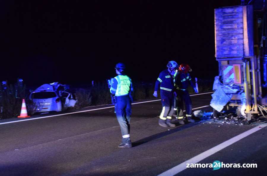 El accidente ha ocurrido esta noche cuando a las 22.43 horas del miércoles, 25 de septiembre, un alertante informó de una colisión entre un camión que transportaba maquinaria y un turismo en el kilómetro 257 de la A-66, a la altura de Montamarta en sentido Extremadura. Según sus datos, al menos tres personas habían resultado heridas, dos de ellas se encontraban atrapadas en el interior del turismo.