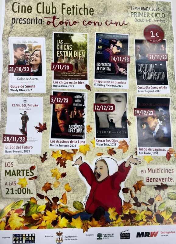 El Ciclo de Cine de Otoño se presentó esta mañana en el Ayuntamiento de Benavente por parte de la concejala de Cultura, Mercedes Benítez y el representante del Cine Club Fetiche, Juan Carlos López. Las ocho sesiones programadas se proyectarán en Multicines Benavente los martes a partir de las nueve de la noche durante los días 31 de octubre, 7, 14, 21 y 28 de noviembre y los días 5, 12 y 19 de diciembre.