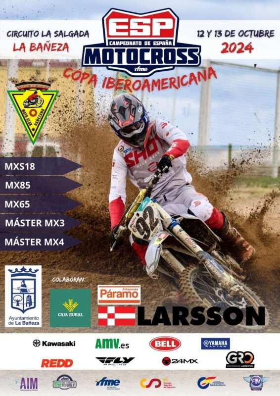 Este sábado 12 de octubre y el domingo día 13 se celebra en el circuito La Salgada de La Bañeza el Campeonato de España y Copa Iberoamericana de Motocross. El Motoclub Bañezano organiza la cita deportiva en categorías MXS18, MX85, MX65, Máster MX3 y Máster MX4.