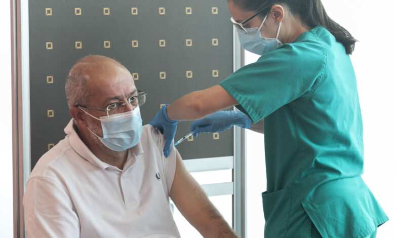 Francisco Igea acudió a la vacunación masiva que se lleva a cabo en el Centro Cultural Miguel Delibes de Valladolid, donde recibió la primera dosis de Pfizer, que se reforzará con la segunda en tres semanas. Igea entró hacia las 11.30 horas salió tras los 15 minutos de reposo para comprobar que la vacuna no provoca ningún efecto adverso. “Todo bien”, dijo a los medios de comunicación que esperaban en el exterior del edificio.