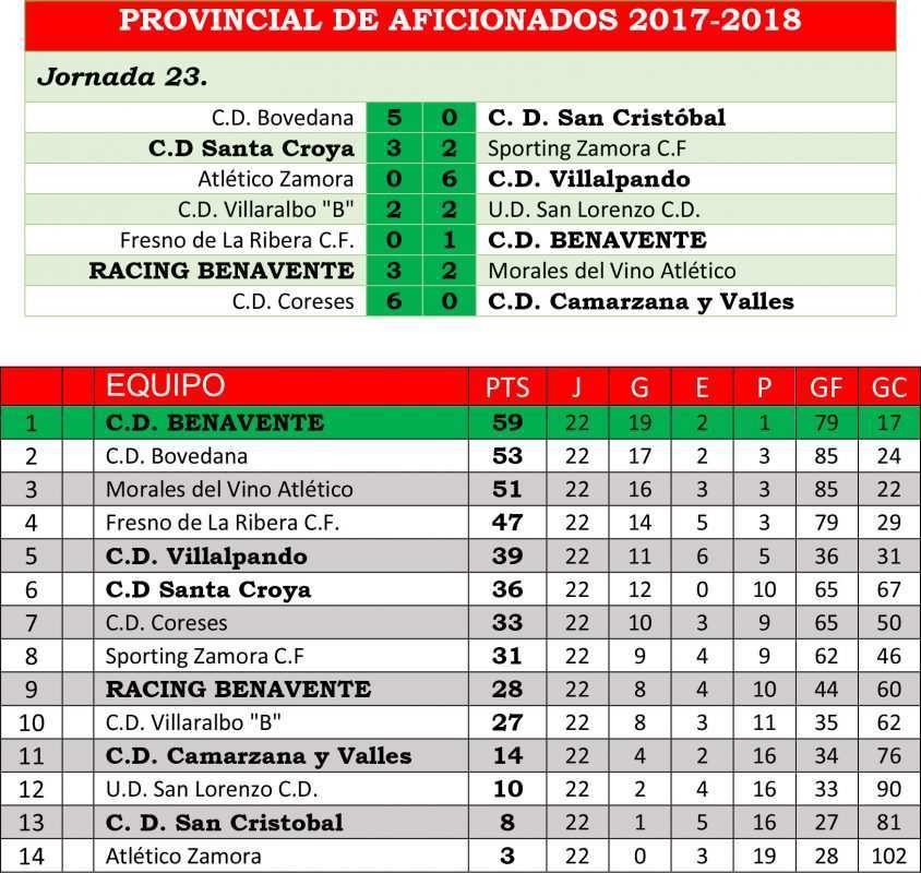 Era, quizá, el desplazamiento más complicado que le quedaba al equipo de Dani González, por supuesto sin desmerecer al Villaralbo, que será el último de los rivales a los que, esperemos rinda visita en la provincial el Benavente en muchos años. Cuatro puntos le restan por lo tanto para proclamarse matemáticamente Campeón de la Liga 2017-2018 y dar el paso, otra temporada más a la Regional de Aficionados.