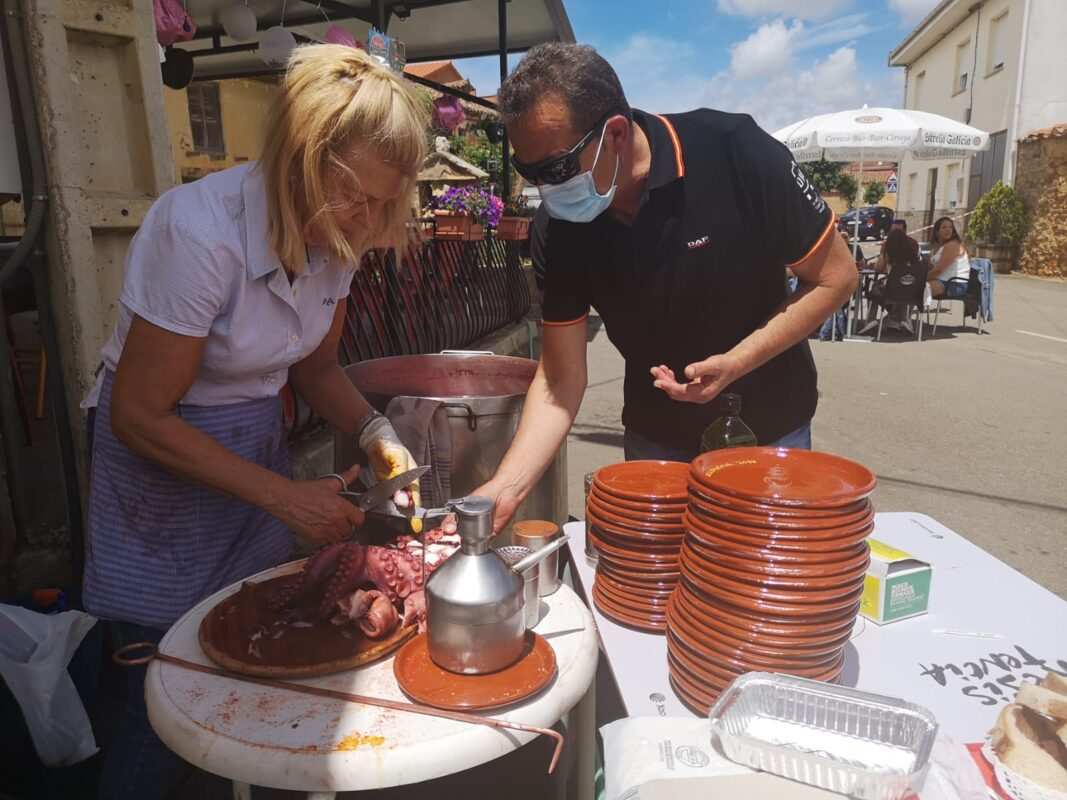 Cualquier motivo es bueno para celebrar una fiesta y de eso saben bien en esta localidad vidrialesa, acogedora como la que más. En esta ocasión, el motivo venía de la mano del gerente del bar del pueblo organizando una «pulpada». Y nada mejor que una pulpeira gallega para elaborar el sabroso plato. Desde la villa ourensana de Barco de Valdeorras llegaba a Fuente Encalada el puesto con el molusco para su degustación en las mesas.