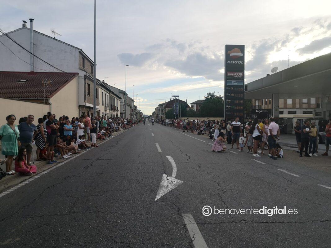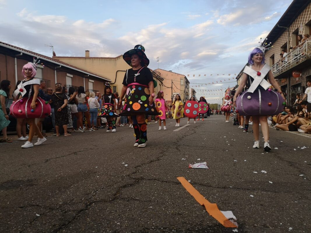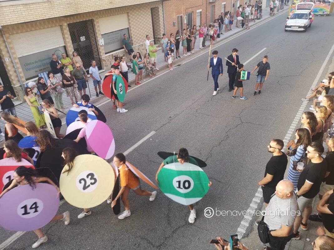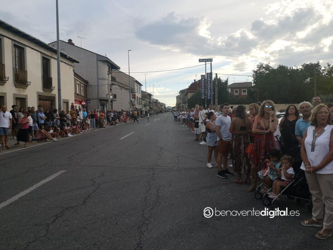 A las ocho de la tarde arrancaba el desfile desde el lugar habitual, en las inmediaciones de la destilería Panizo. Mientras, el numeroso público apostado en las aceras de la travesía esperaba impaciente la llegada de los grupos de desfile y de las carrozas. La alegría y diversión inundaron de sensaciones el ambiente festivo de este ya referente desfile en la comarca de Benavente, organizado tradicionalmente en la jornada de la patrona, la Virgen de la Asunción.