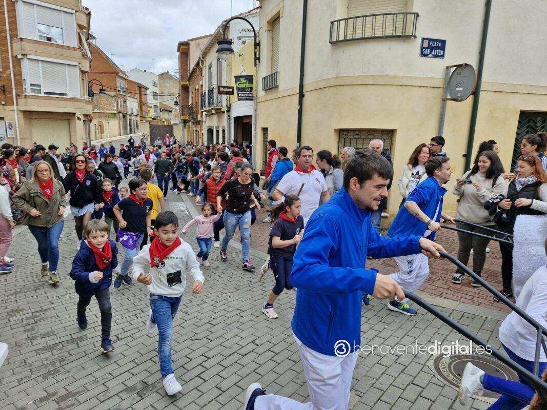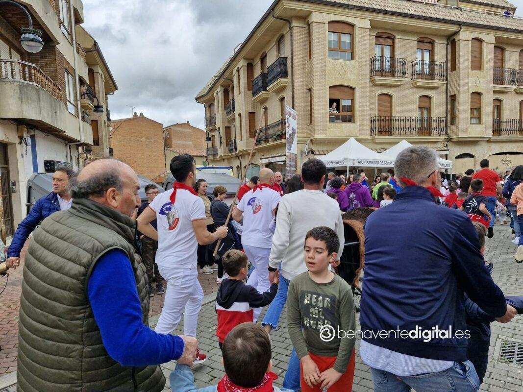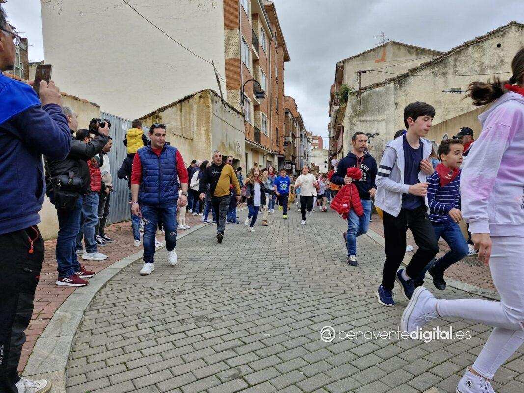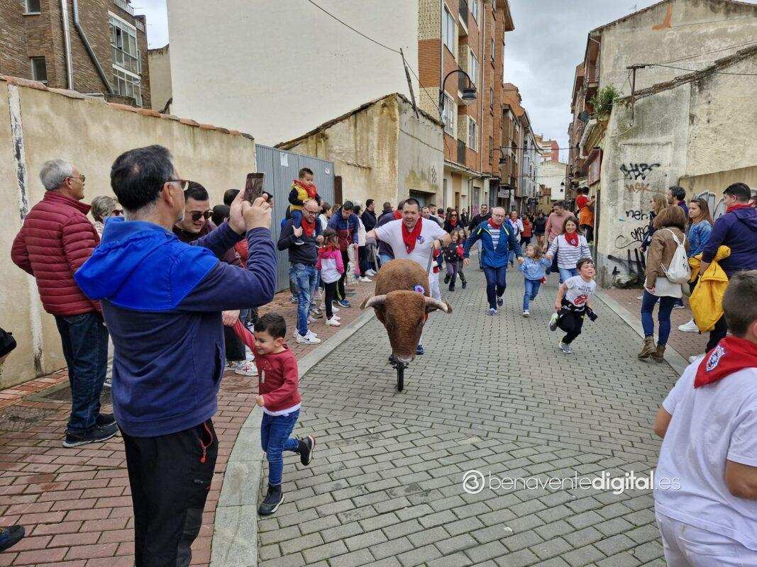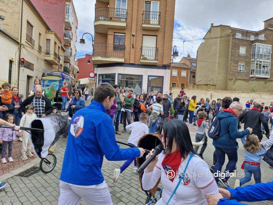 En esta jornada se ha continuado formando a los niños y jóvenes en la correcta manera de correr el toro de nuestra ciudad. Para ello se ha realizado una carrera siguiendo el recorrido tradicional del Toro Enmaromado con unos carretones hiperrealistas del animal. Los niños, agarrados de la maroma, han recorrido las calles de Benavente en un ensayo de lo que les espera a nuestros vecinos el próximo 29 de mayo.