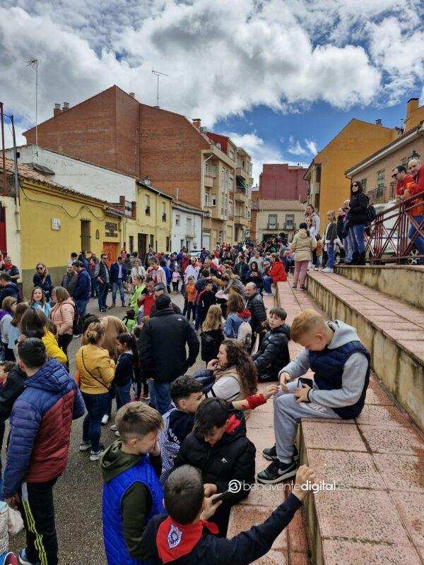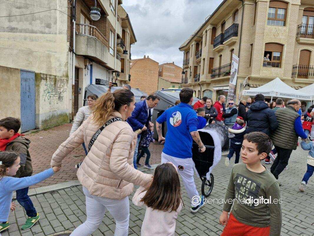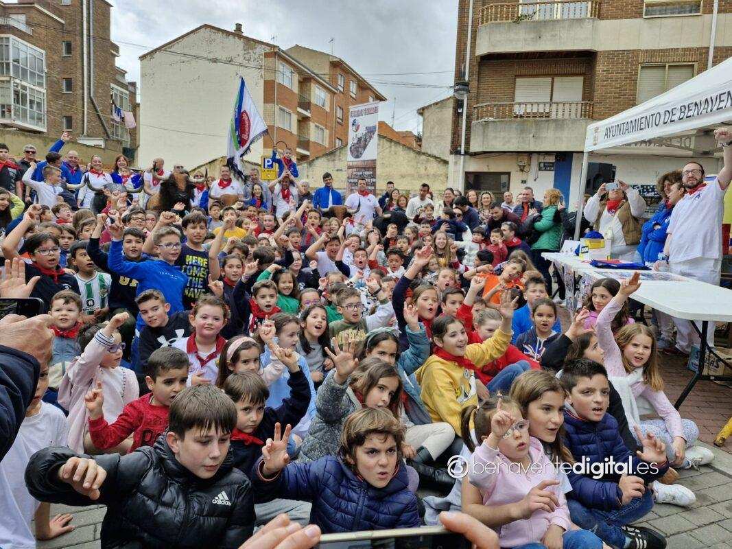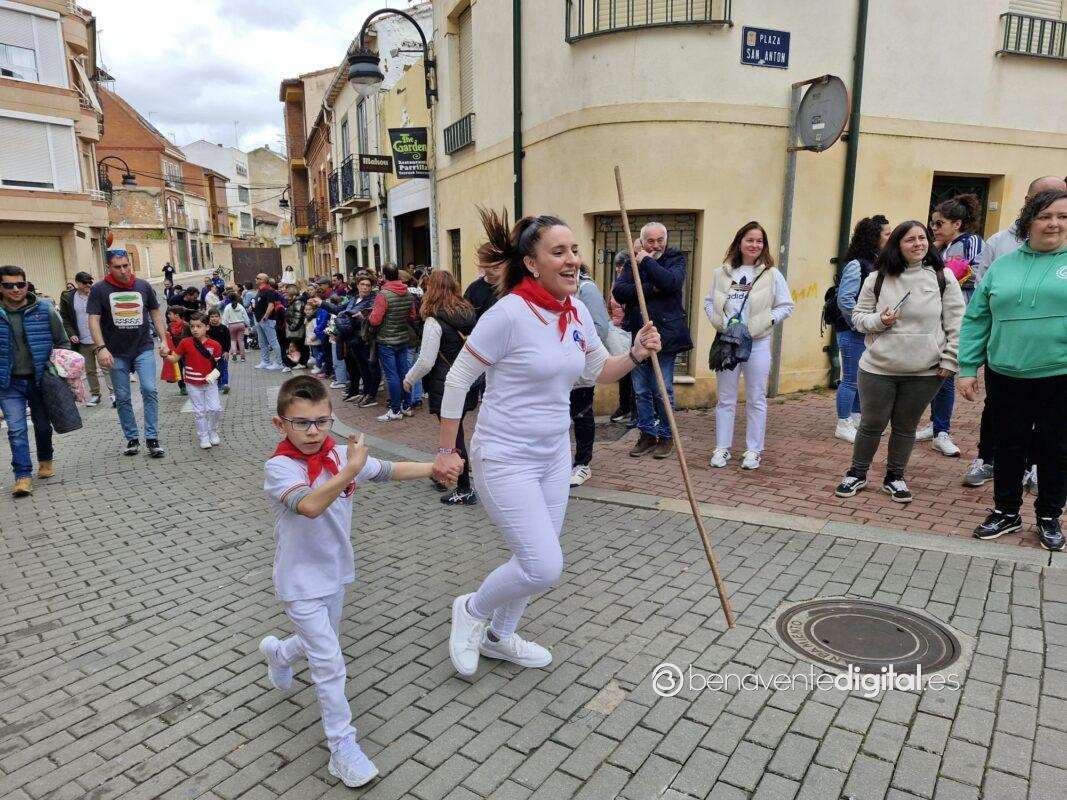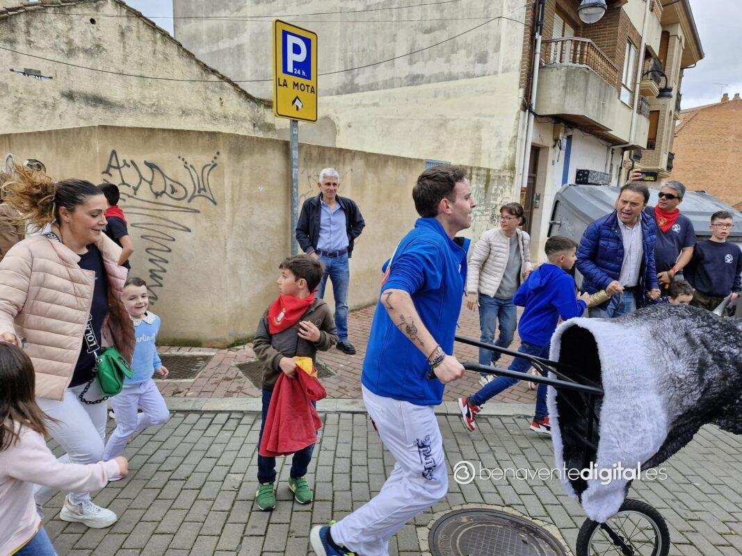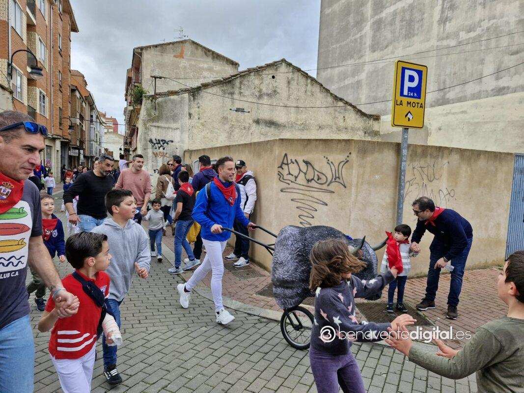 En esta jornada se ha continuado formando a los niños y jóvenes en la correcta manera de correr el toro de nuestra ciudad. Para ello se ha realizado una carrera siguiendo el recorrido tradicional del Toro Enmaromado con unos carretones hiperrealistas del animal. Los niños, agarrados de la maroma, han recorrido las calles de Benavente en un ensayo de lo que les espera a nuestros vecinos el próximo 29 de mayo.