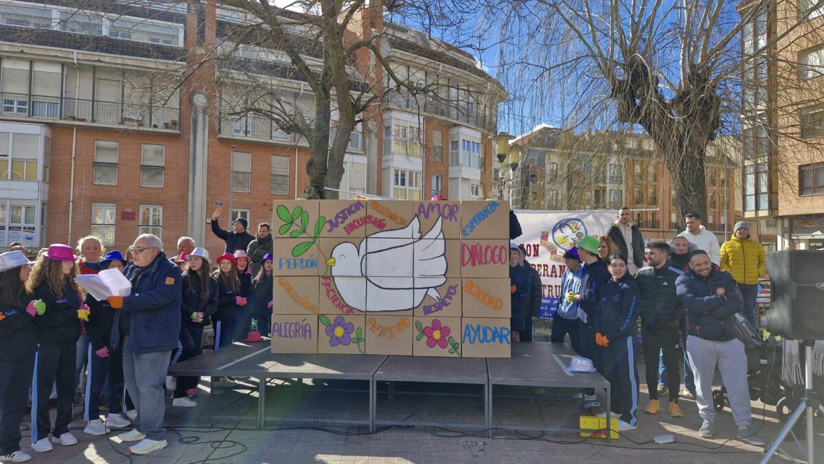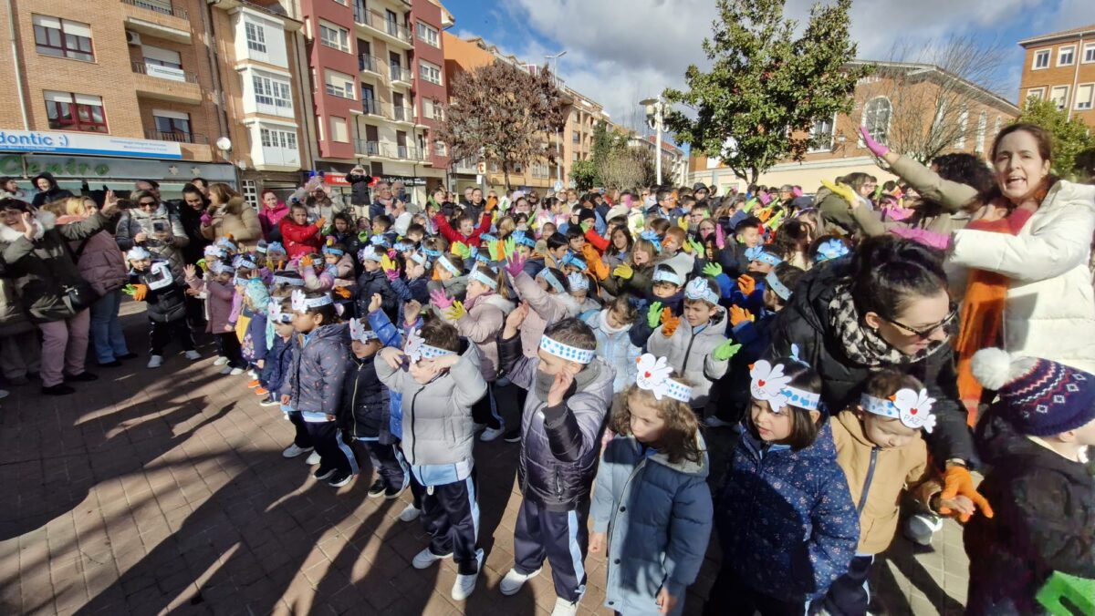 El colegio San Vicente de Paúl celebró hoy, 30 de enero, el tradicional acto de la paz en la plaza del colegio a las 12:30h. Durante el evento, se realizaron varias actividades en las que los estudiantes participaron activamente, poniendo en práctica los valores de la paz. Un muro fue construido con cajas, y cada vez que un alumno subía a una de ellas, pronunciaba un valor relacionado con la paz, como justicia, inclusión, amor, esperanza, diálogo, respeto, bondad, ayuda, alegría, generosidad y amistad, acompañándolo con una frase que destacaba la importancia de ese valor.