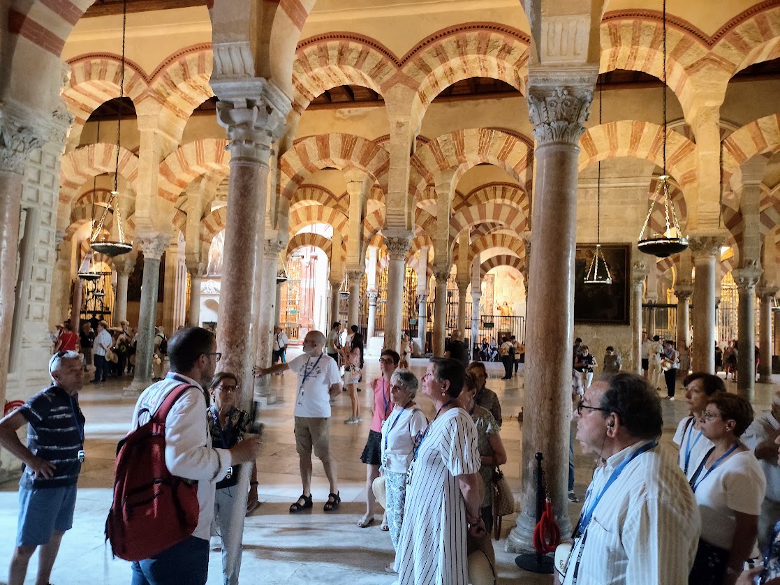 Ya en la ciudad de Córdoba, los viajeros visitaron la judería, el Alcázar de los Reyes Cristianos y, cómo no, la Mezquita Catedral, monumento único en el mundo, acompañados por Rafael y Carlos, excelentes guías de “Woow Córdoba”.
