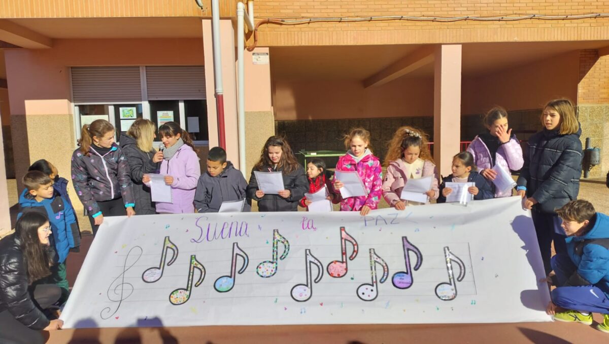 Además, el colegio ha preparado una pancarta especial con las palabras «Sueña la Paz». Esta ha sido decorada con nueve corcheas, un trabajo realizado por cada uno de los cursos. En cada corchea musical, los alumnos han plasmado un fragmento de la canción que acompaña el mensaje de paz, personalizando la decoración con su toque único.