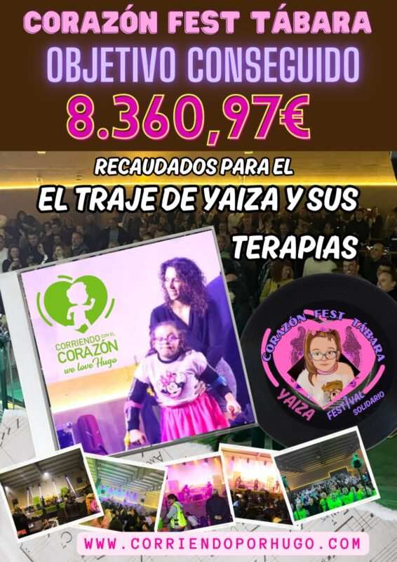 La Asociación Corriendo con el Corazón por Hugo, organizadora del festival, informa que el dinero “sobrante” del traje será invertido íntegramente en las diferentes terapias que realiza Yaiza durante todo el año.