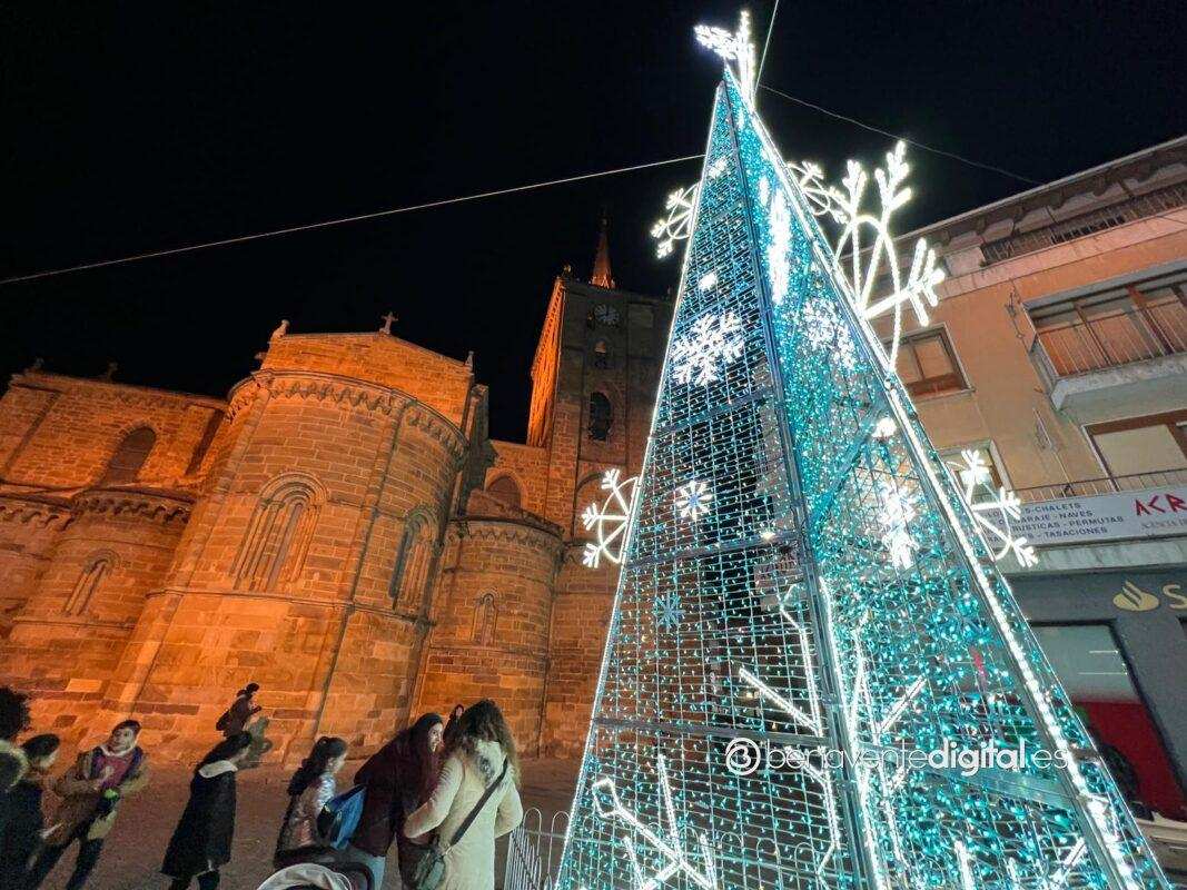 Puntual, a las siete de la tarde, la alcaldesa de la ciudad, Beatriz Asensio y el concejal de Fiestas, Alberto Lorenzo Colinas, bajaron juntos la palanca que encendía las luces de la Plaza Mayor y del resto de la ciudad, arropados por el resto de concejales del actual equipo de gobierno.