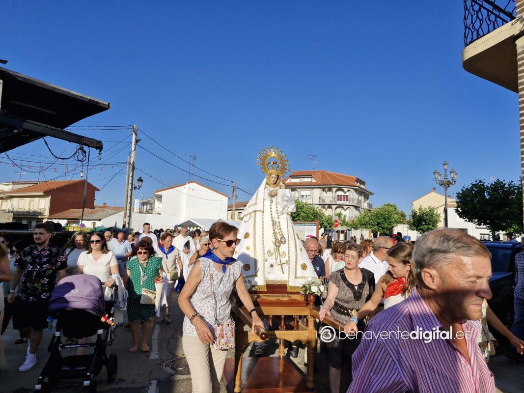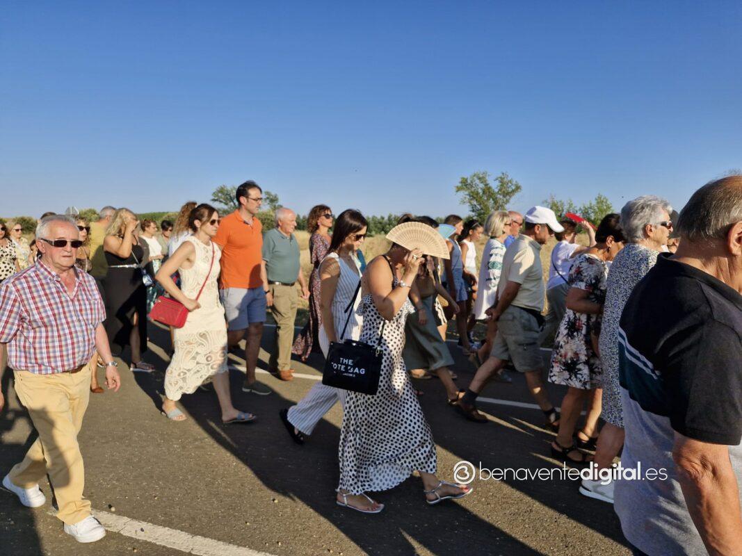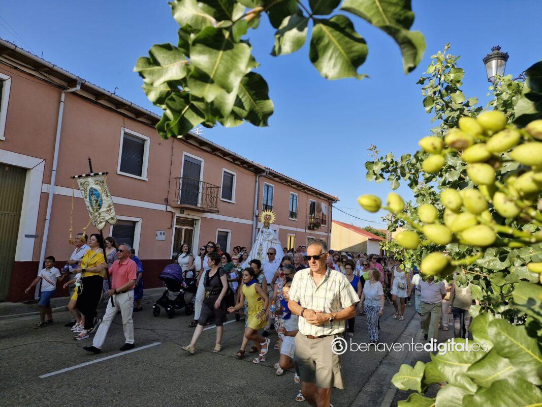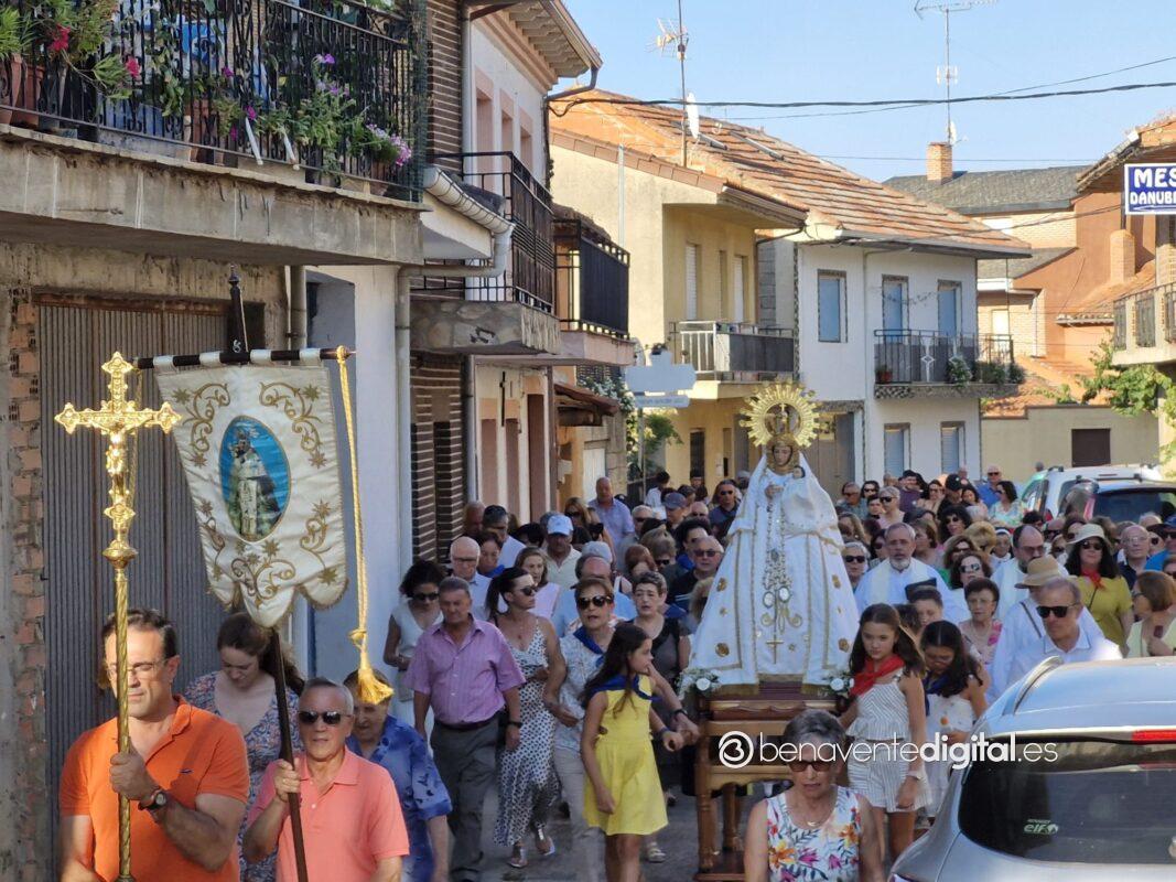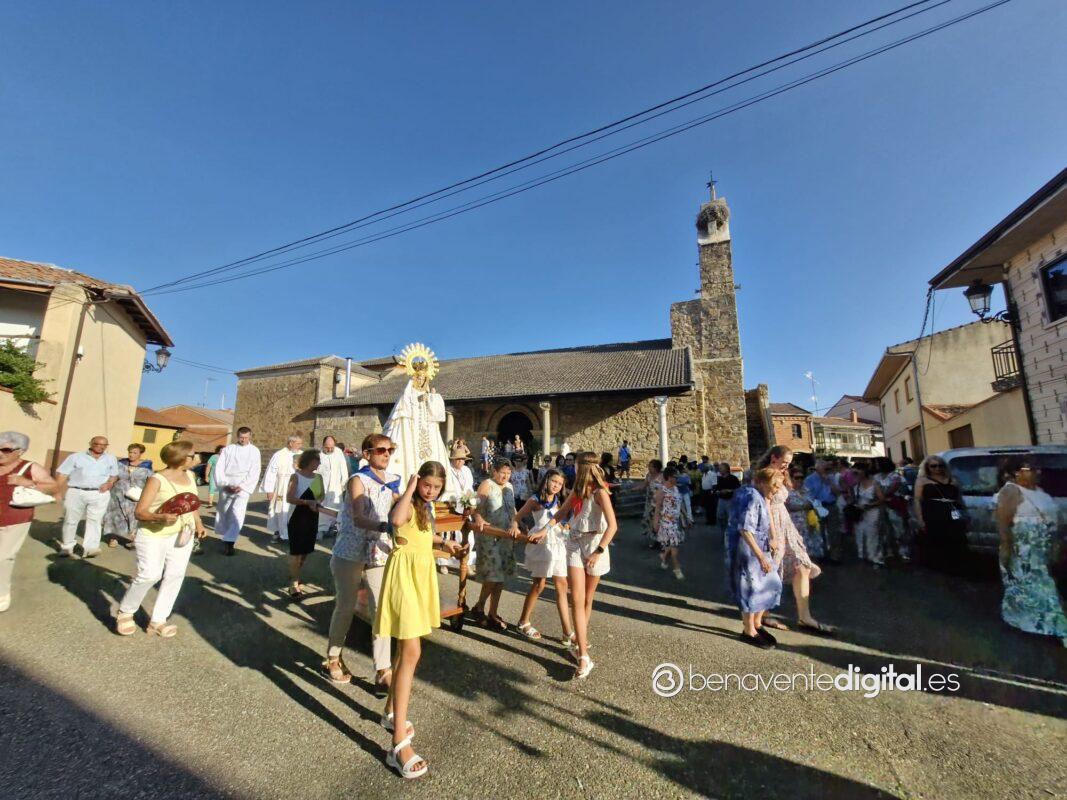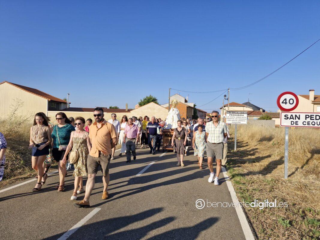 Entre abanicos y cánticos emocionados salía a la calle la Virgen de las Nieves, en un desfile procesional hasta la ermita que se alza en las inmediaciones de la carretera de Junquera de Tera, a un kilómetro del casco urbano. Centenares de personas acompañaron a su patrona en una procesión avivada con los ardientes rayos del sol, a su ocaso, pero sin mermar las fuerzas de los devotos. Se cumple así una tradición secular alimentada por los vecinos de San Pedro de Ceque, residentes y descendientes del pueblo que no quieren olvidar sus raices y tradiciones.