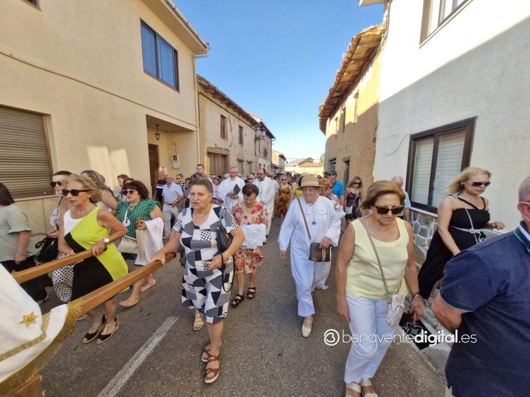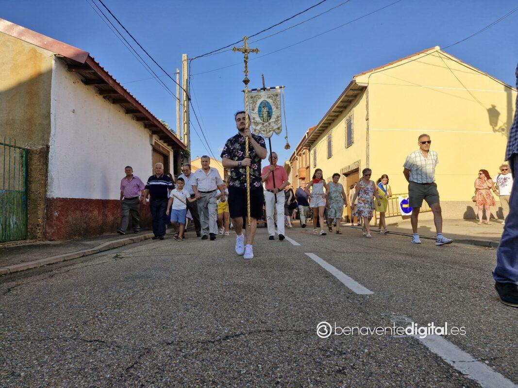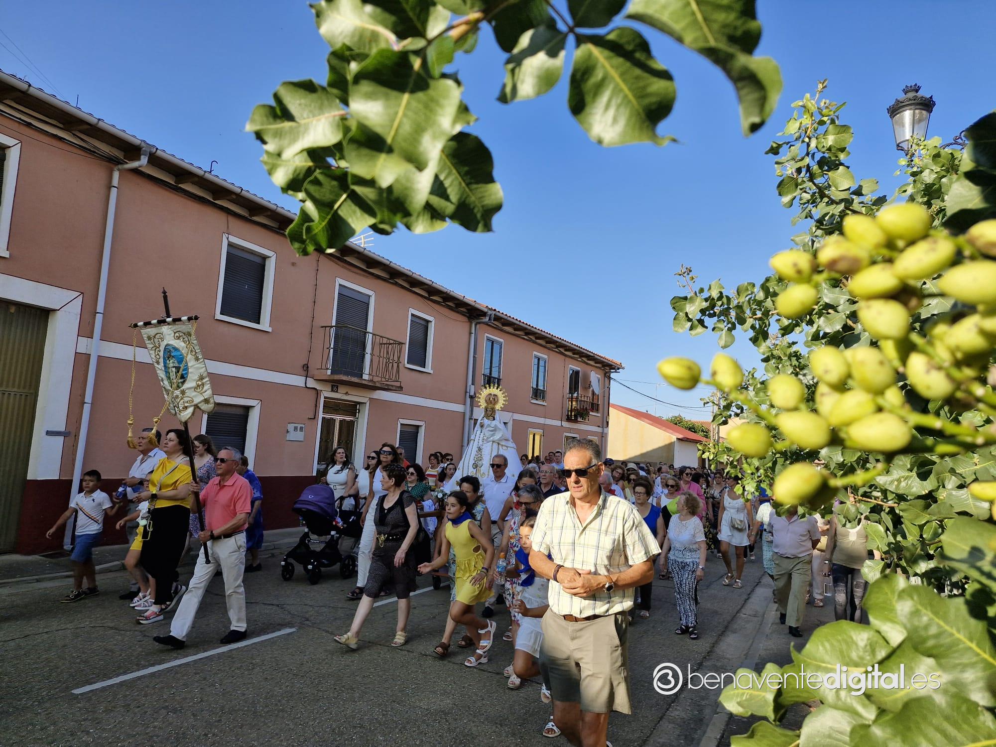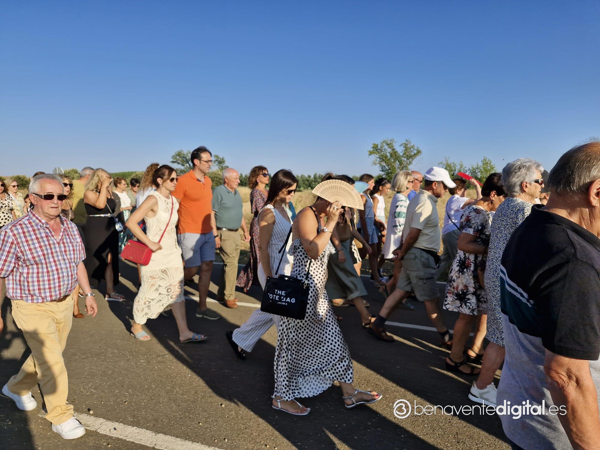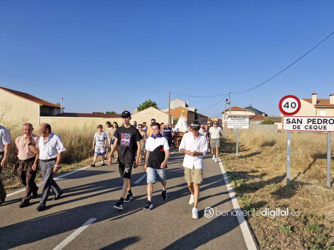 Entre abanicos y cánticos emocionados salía a la calle la Virgen de las Nieves, en un desfile procesional hasta la ermita que se alza en las inmediaciones de la carretera de Junquera de Tera, a un kilómetro del casco urbano. Centenares de personas acompañaron a su patrona en una procesión avivada con los ardientes rayos del sol, a su ocaso, pero sin mermar las fuerzas de los devotos. Se cumple así una tradición secular alimentada por los vecinos de San Pedro de Ceque, residentes y descendientes del pueblo que no quieren olvidar sus raices y tradiciones.