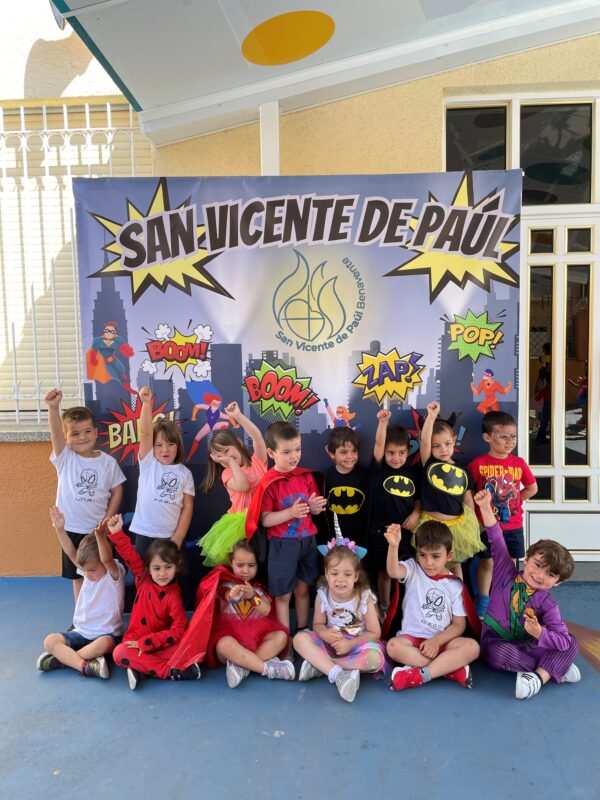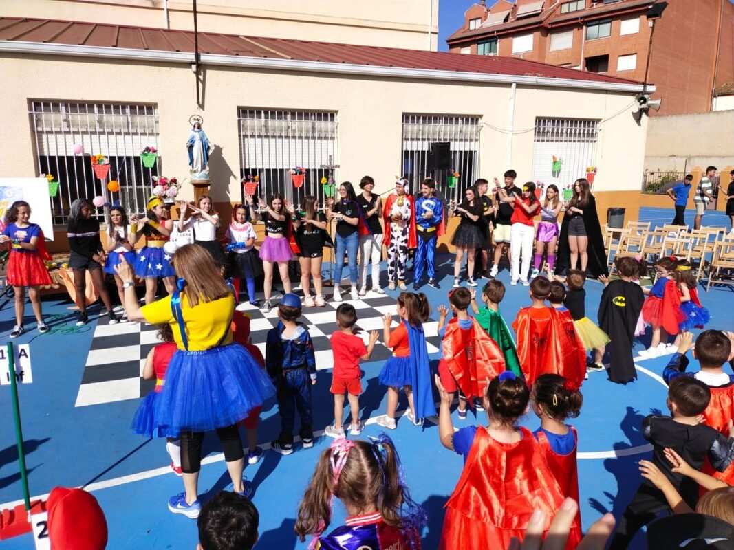 El pasado viernes el colegio San Vicente de Paúl de Benavente celebró su fiesta de fin de curso con temática de héroes y villanos. La celebración comenzó en el patio del centro en el que estaban todos los cursos y familias de los alumnos. A continuación talleres y actuaciones musicales, bailes, danza y finales deportivas.
